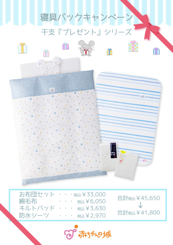 ※期間中、赤ちゃんの城の布団セットをお買上げの方、先着10名様にノベルティをプレゼントいたします。