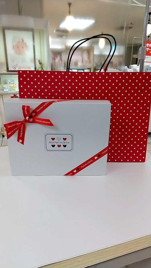天満屋福山店・出産準備用品売り場では、赤ちゃんの城・ギフトフェアを開催しております。期間中、赤ちゃんの城で税込5,500円以上お買い上げいただくと、赤ちゃんの城オリジナルギフト箱に入れてラッピング致します。(赤ちゃんの城オリジナルのかわいい提げ袋つき!)ご出産祝いや、お孫さんへのプレゼントなどご検討中の方は、この機会にぜひ天満屋福山店・出産準備用品売り場へお越しください!