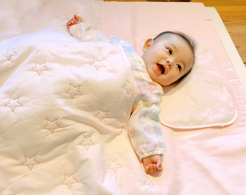 軽くてふんわりとしたキルトケットは、そのまま洗えて乾きやすいので、1年中使いやすく便利なアイテムです。