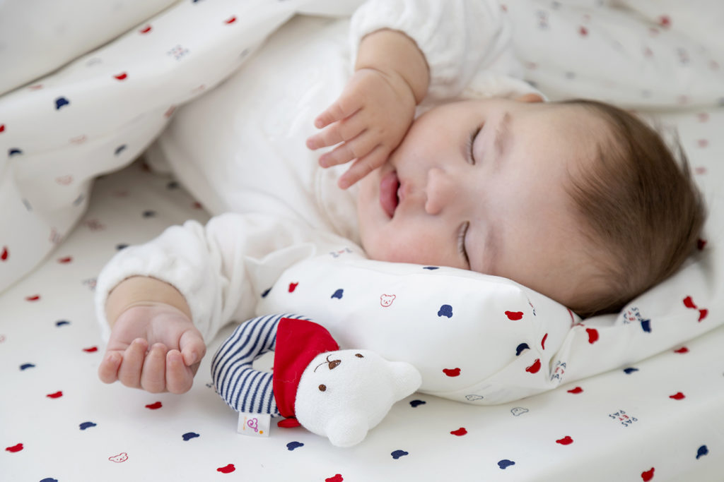 赤ちゃんのための敷布団、エコホールサンドマット。通気性に優れ、適度な硬さで背骨を支えます。