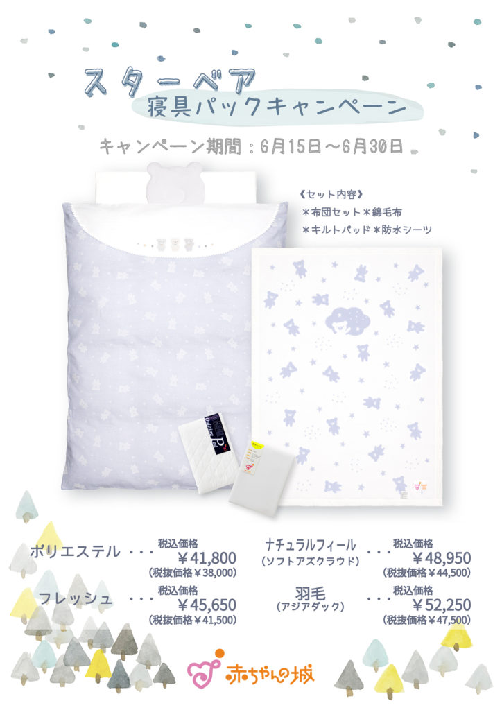 2022年秋冬新作ベビー布団が発売しました!発売を記念して、期間限定お買い得寝具パックをご用意しております。秋冬生まれの赤ちゃんのために、通常は別売りになっているキルトパッド・防水シーツ・綿毛布をセットしました。