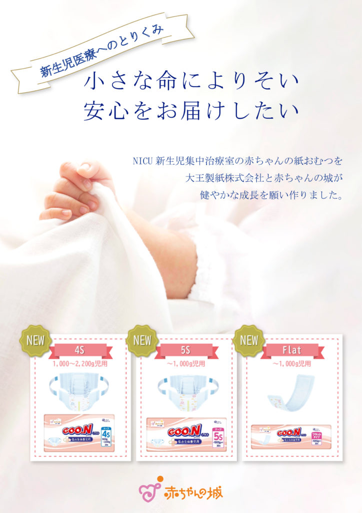 NICU(新生児集中治療室)の赤ちゃんのために、大王製紙株式会社と赤ちゃんの城が小さなサイズの紙おむつをつくりました。