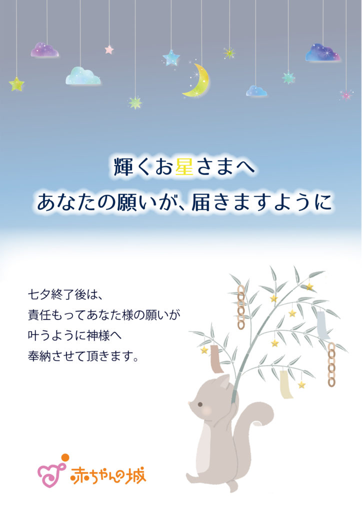 安産の願いを願いを込めて書いた短冊を笹の葉に飾っていただき、