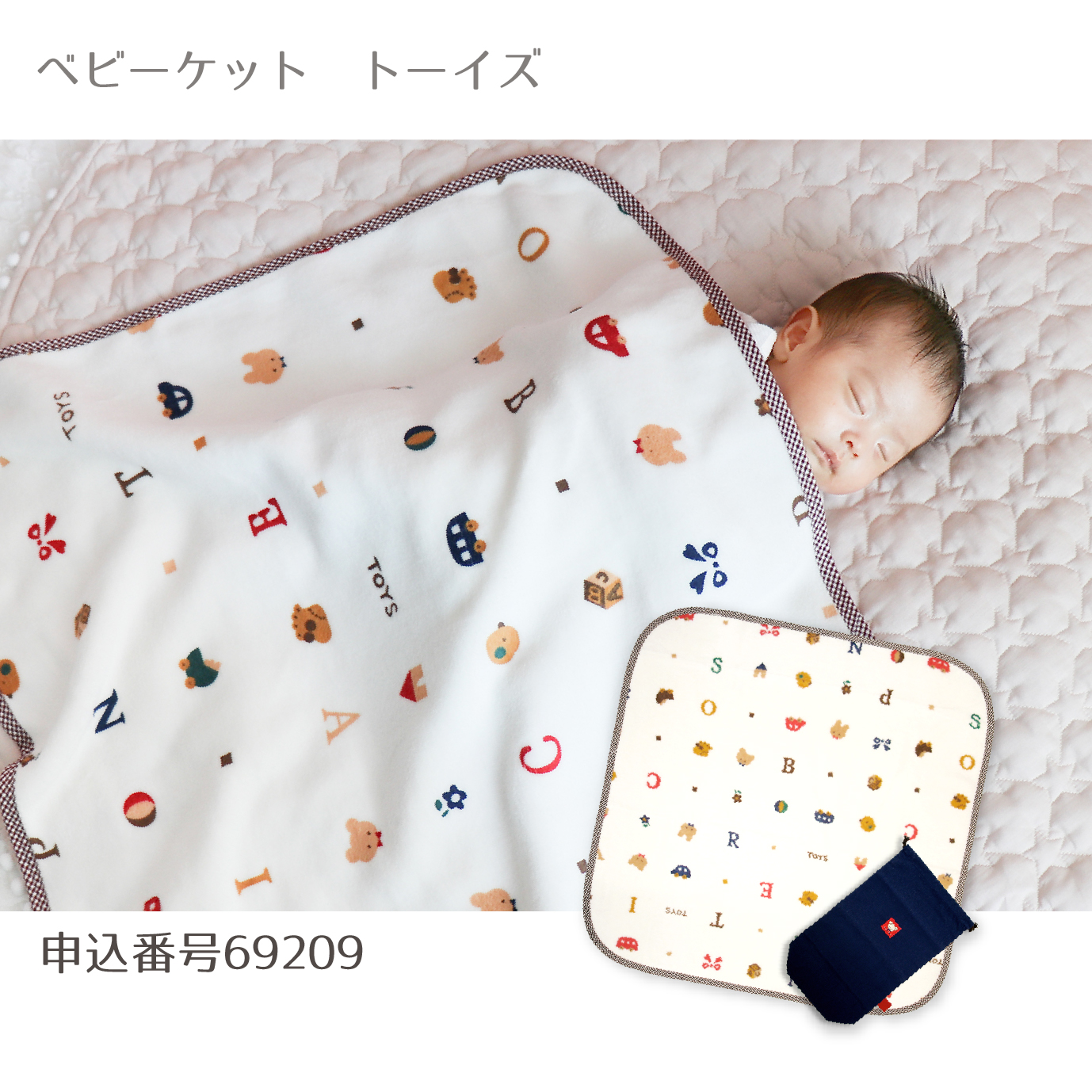可愛い動物とおもちゃの柄のベビーケットです。収納袋付きでお出かけにも便利。やわらかい綿毛布素材なので肌が敏感な赤ちゃんにピッタリのケットです。