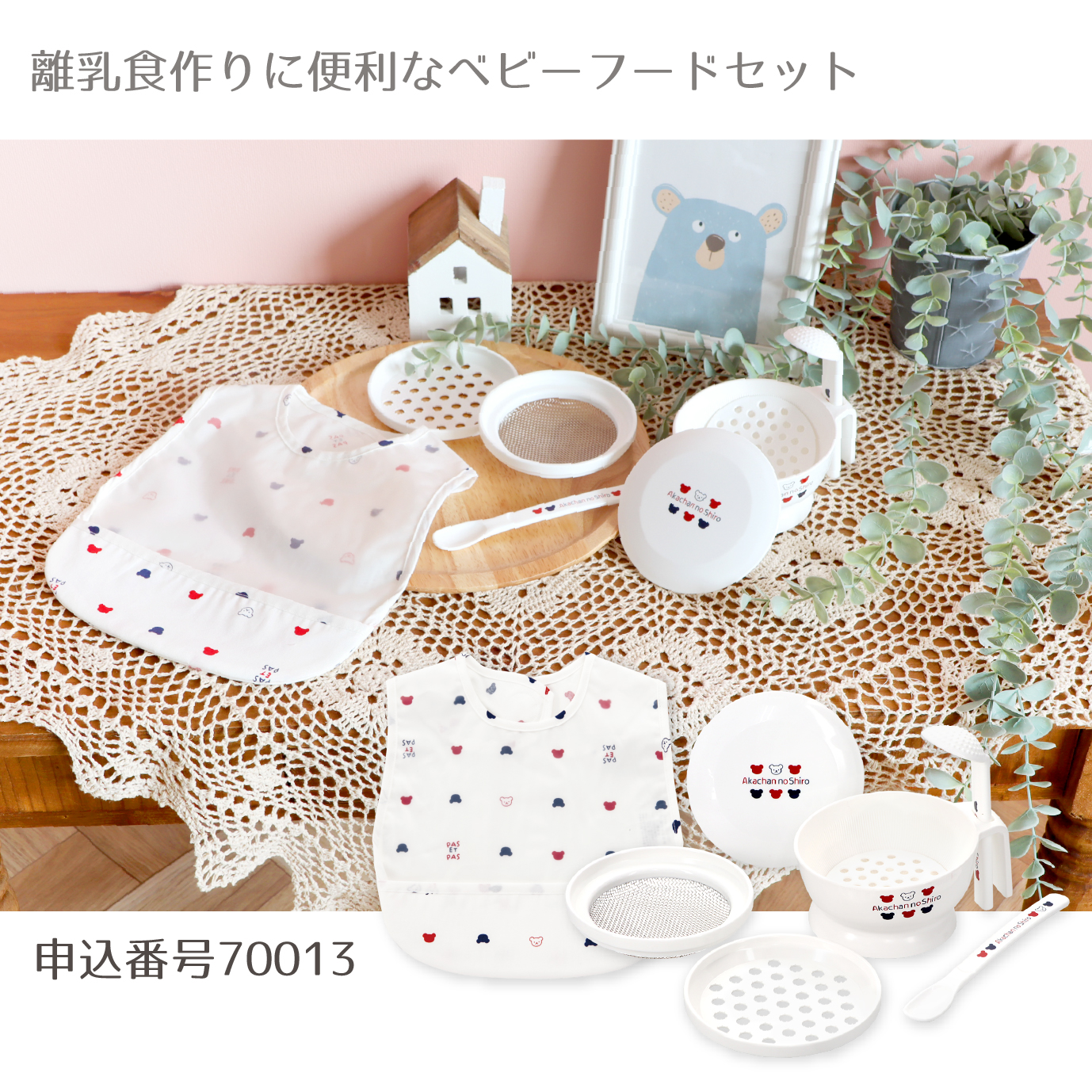 〈ベビーフードセット〉■セット内容・素材:・すり鉢・蒸しプレート・すりつぶしスプーン・ふた・フィーディングスプーン(全てポリプロピレン)・こし網(ポリプロピレン・ステンレス)・おろし器(AS樹脂)■色:オフホワイト■日本製