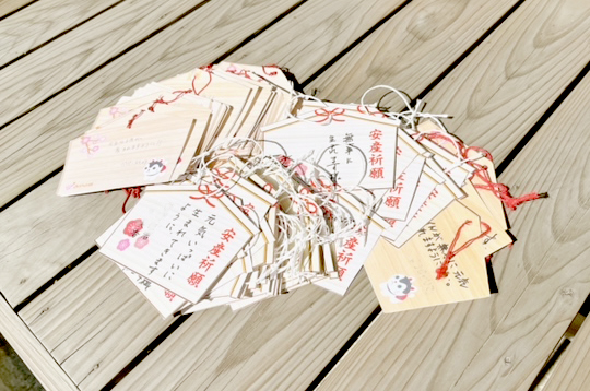 藤崎百貨店、福山天満屋、鶴屋百貨店にて行われた安産祈願イベントにて、出産を控えたお客様やご家族様から書いていただいた大切な絵馬を奉納するためです。