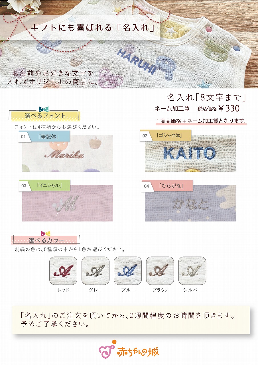 フェア期間中、オリジナル名入れ刺繍をご注文いただけます。