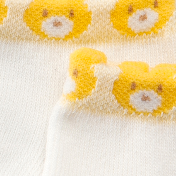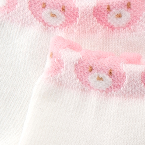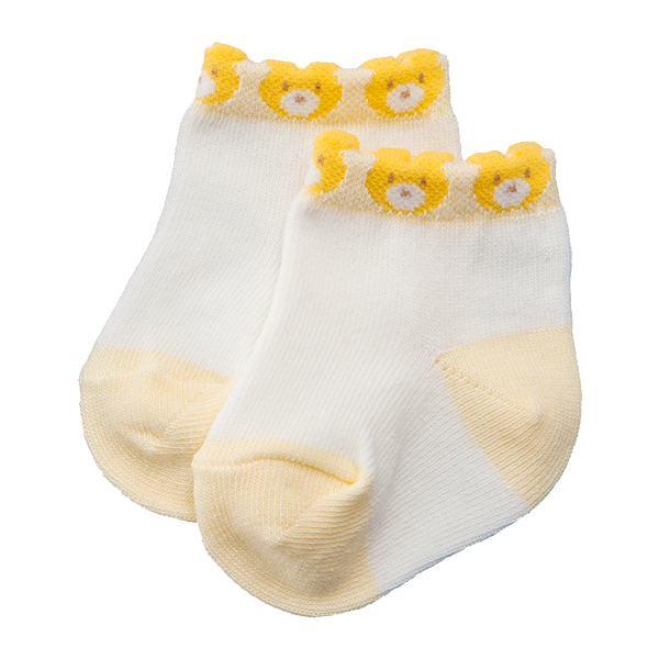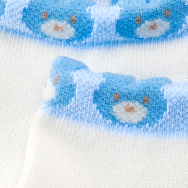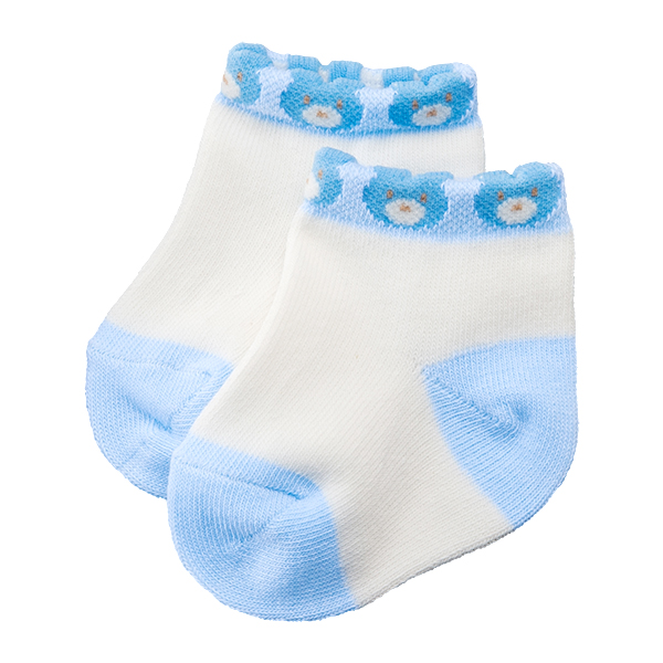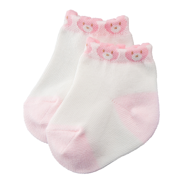 足首にくまさんの顔が並んだかわいらしいデザインのソックスです。3色展開しているので、お気に入りの色を探してみてください。伸縮性のある生地で赤ちゃんの脚をやさしく包みます。ご自宅用はもちろん、ちょっとしたプレゼントとしてもおすすめの商品です。
