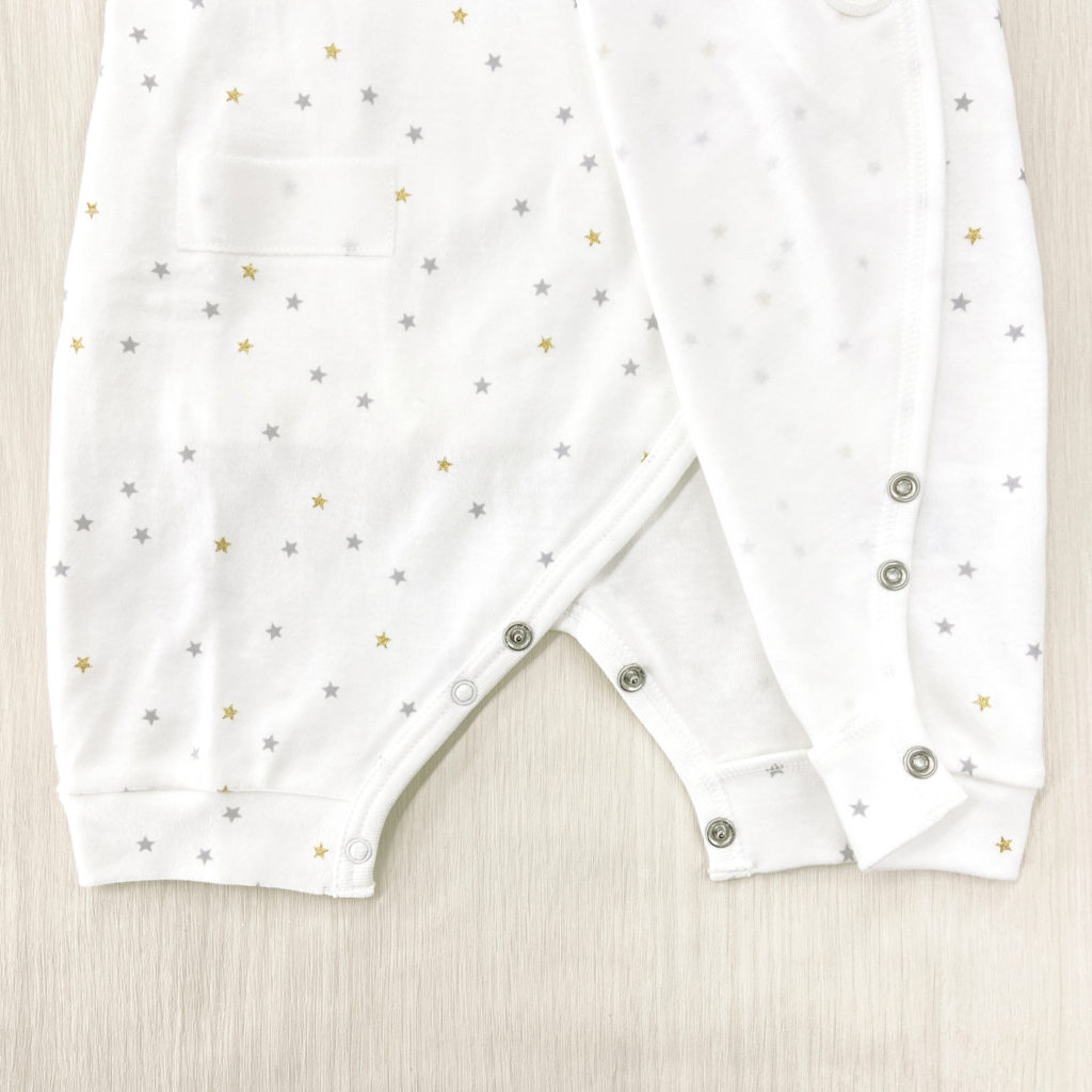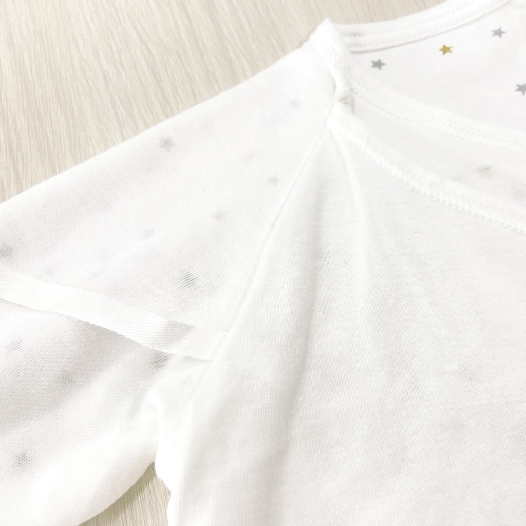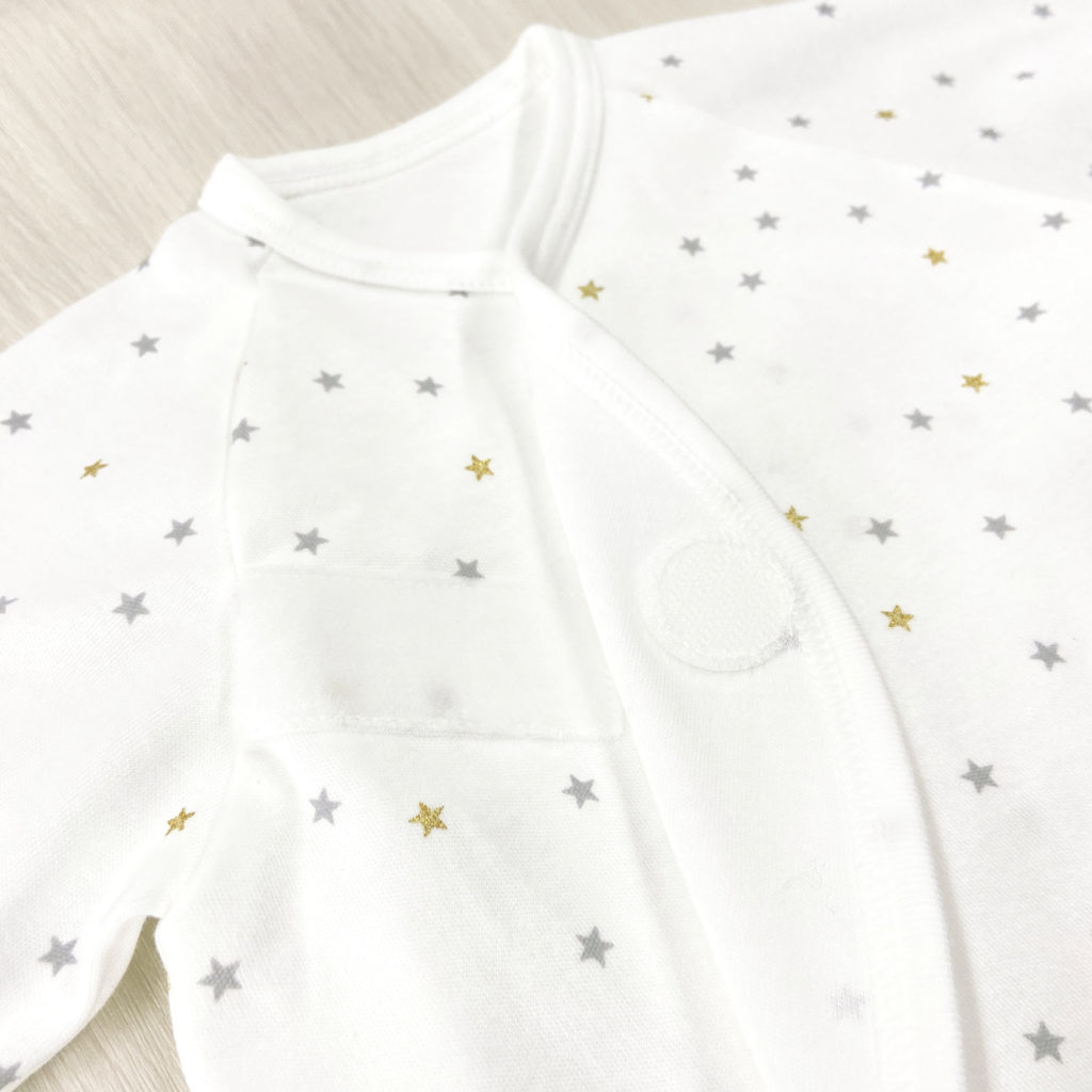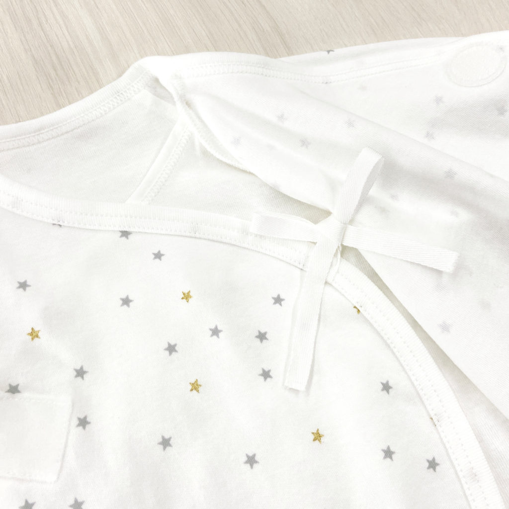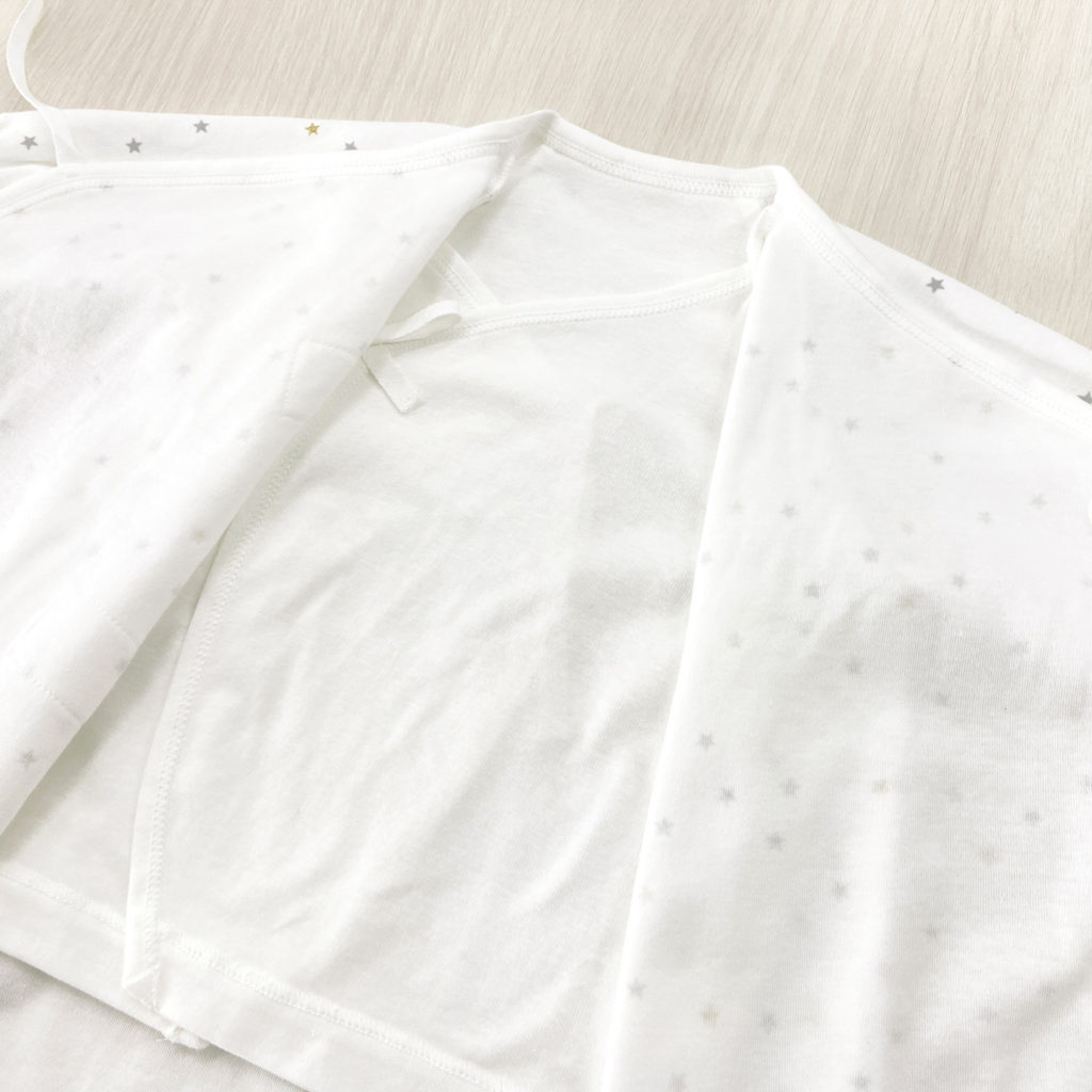 産婦人科の助産師・看護師さんと共同開発したウエア。肌着がくっついて、さらに便利になりました!院内で毎日何十枚も着せ替える助産師さん・看護師さんにとって、脱ぎ着が簡単でしかもかわいいウエアは、理想的なものと推奨していただきました。
