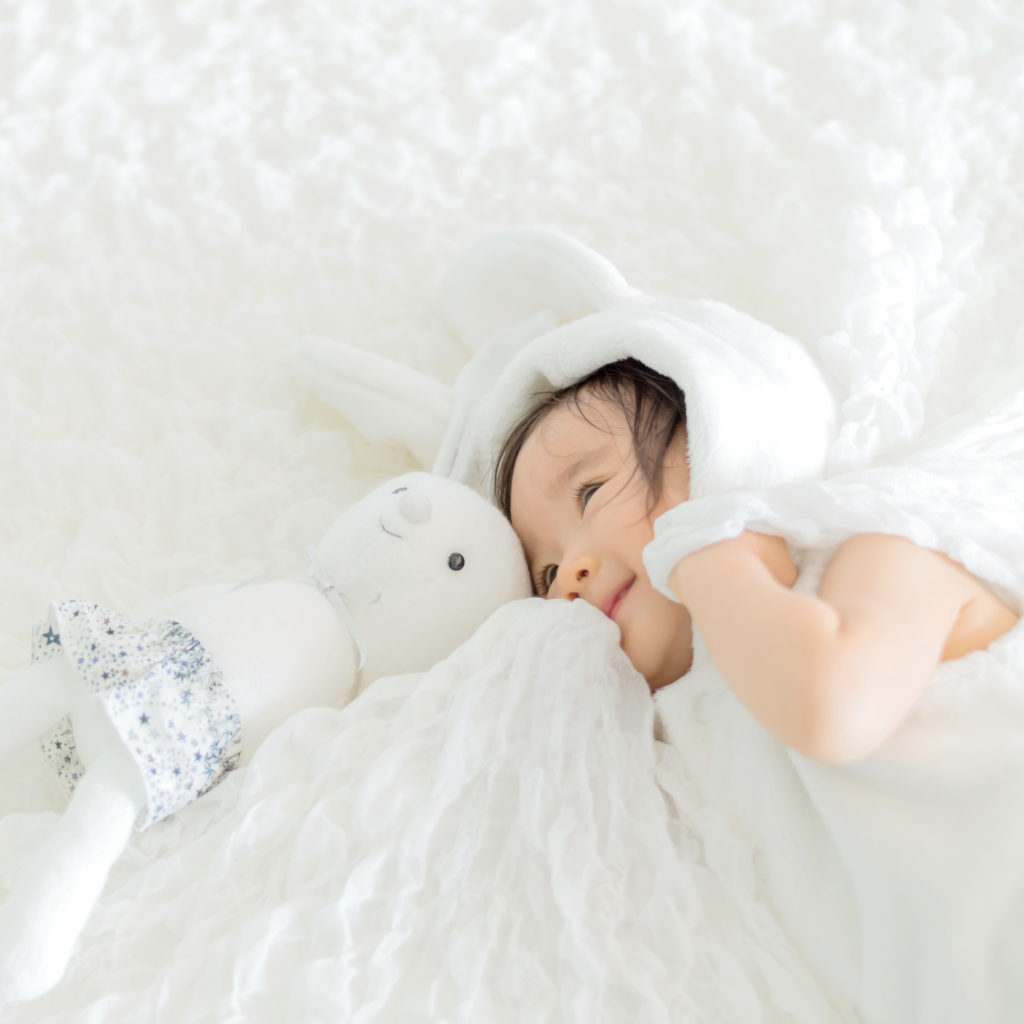 ふわふわの手触りが気持ちよく、安心の日本製なので、赤ちゃんの初めてのお友達にぴったりです。