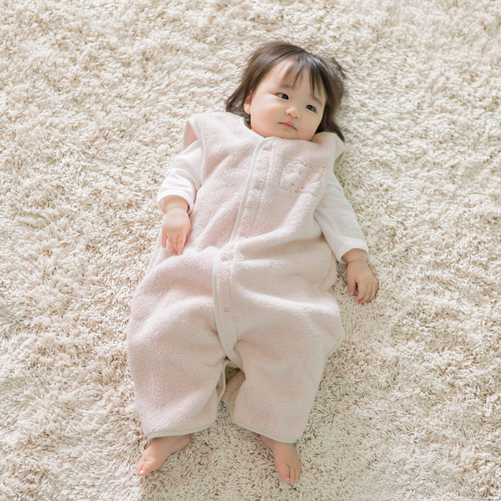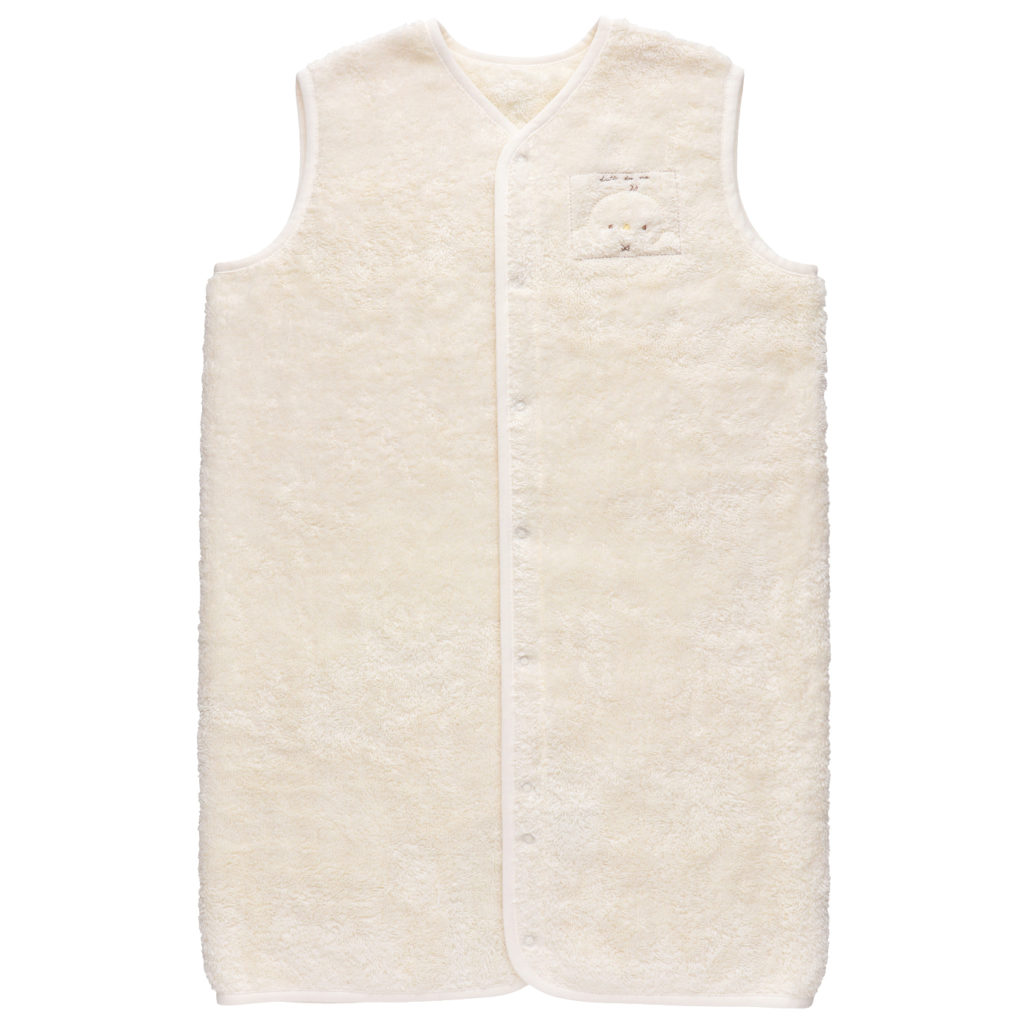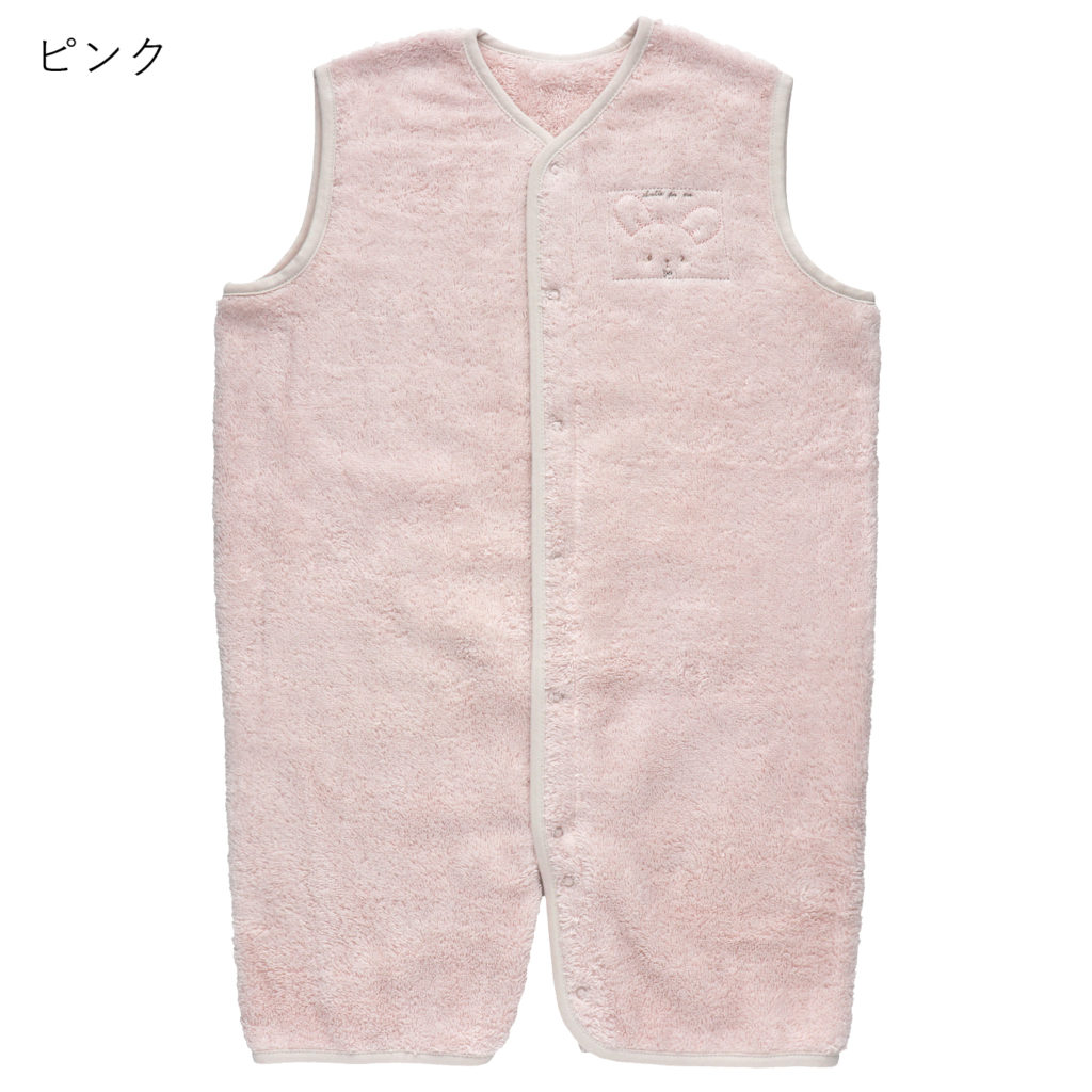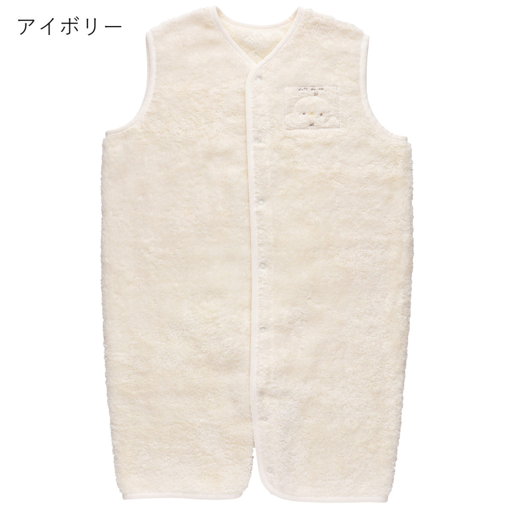 赤ちゃんの動きを妨げないゆったりとしたデザインで、ねんねでお布団を蹴ってしまう赤ちゃんにも安心してお使い頂けます。 着せ替えしやすい前開きタイプ、おなかが出ない長めの丈で、寝冷え対策に最適。 股下のボタンを留めかえることで2通りの使い方が出来て便利です。