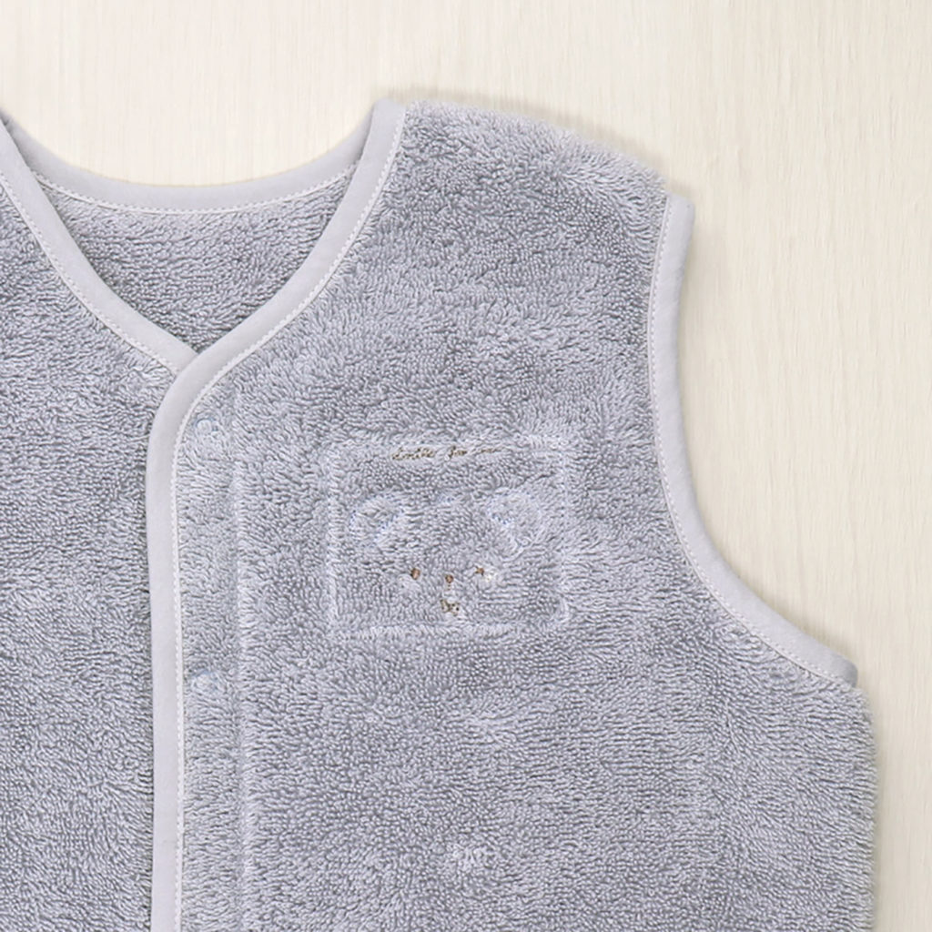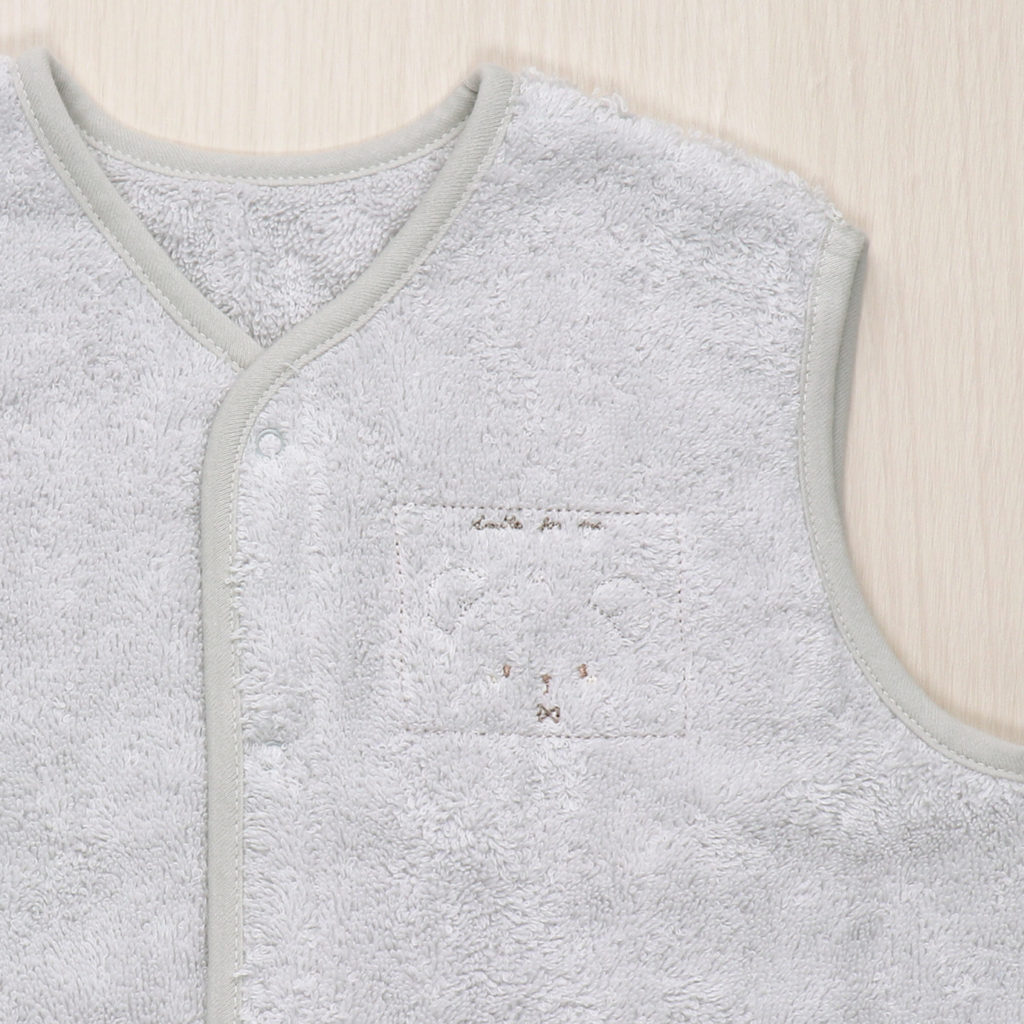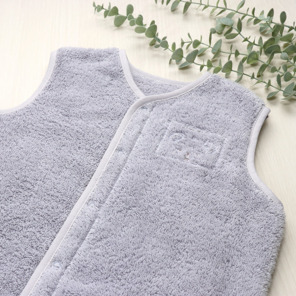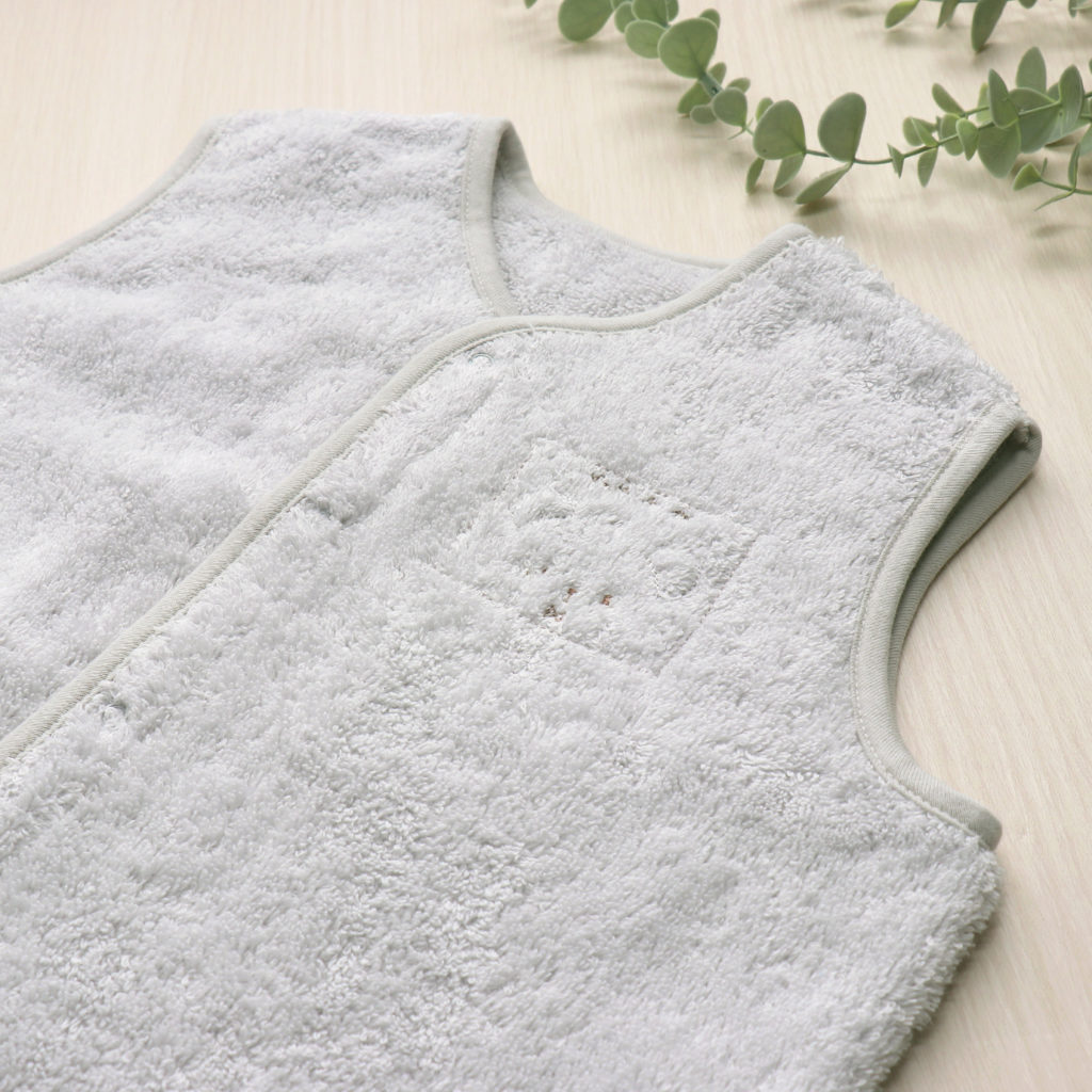 シックで落ち着いたカラーのタオル素材のスリーパーです。 お洗濯を繰り返しても、ふんわりやわらかなエアーかおるタオル。 やさしい肌ざわりで一年中お使いいただけます。