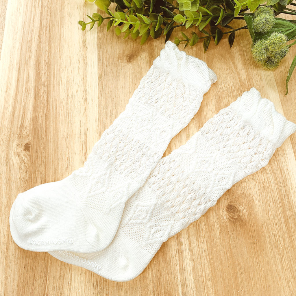 3ヶ月頃からお使い頂けるベビー用ハイソックスです。冷え対策や日焼け対策はもちろん、ハイハイのときに擦れる足をカバーして、赤ちゃんの肌を守ってくれます。安心・安全の日本製です。