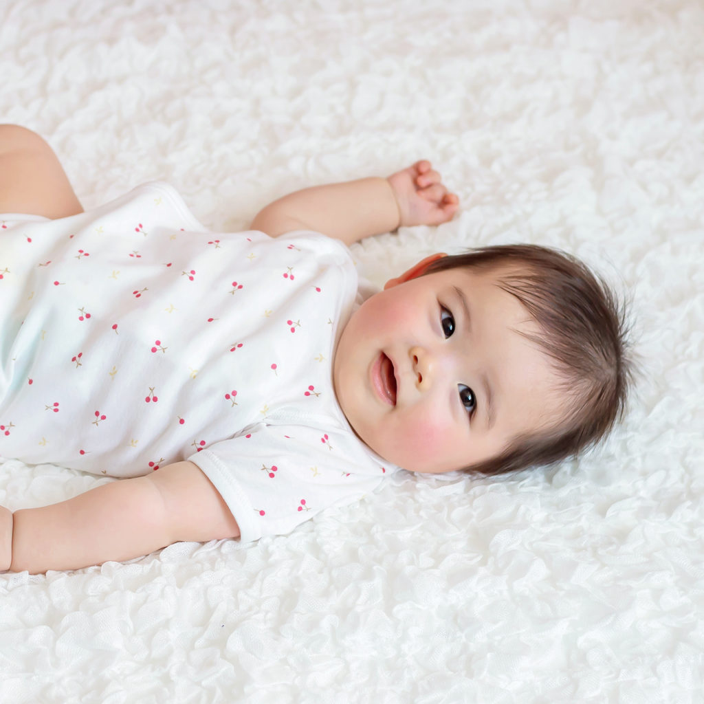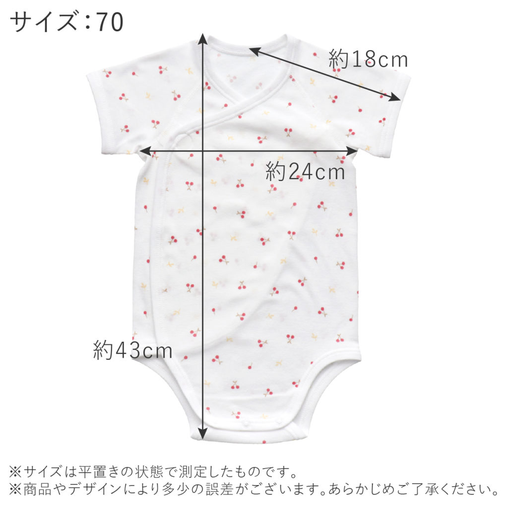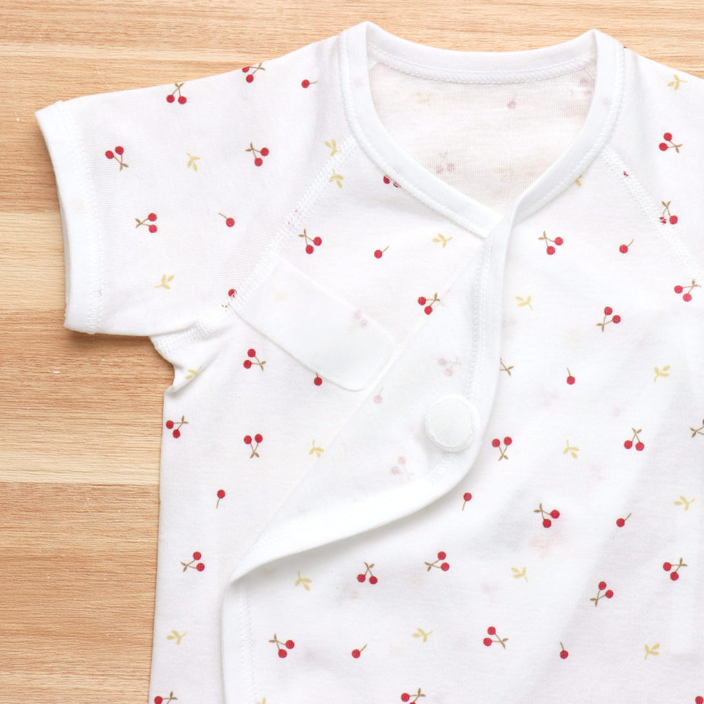 寝かせたままのお着替えもラクチンな前開きタイプで、肌着としてはもちろん、お部屋着としても大活躍の人気アイテムです。