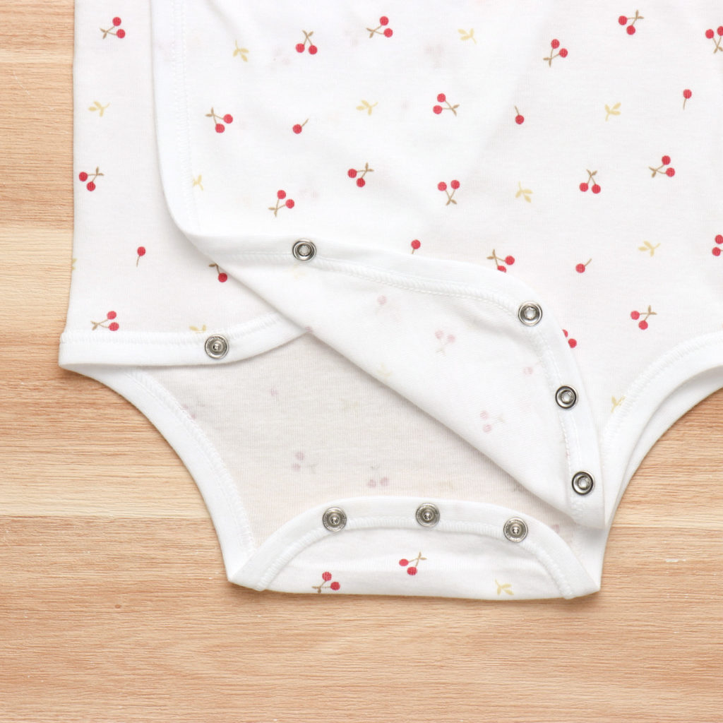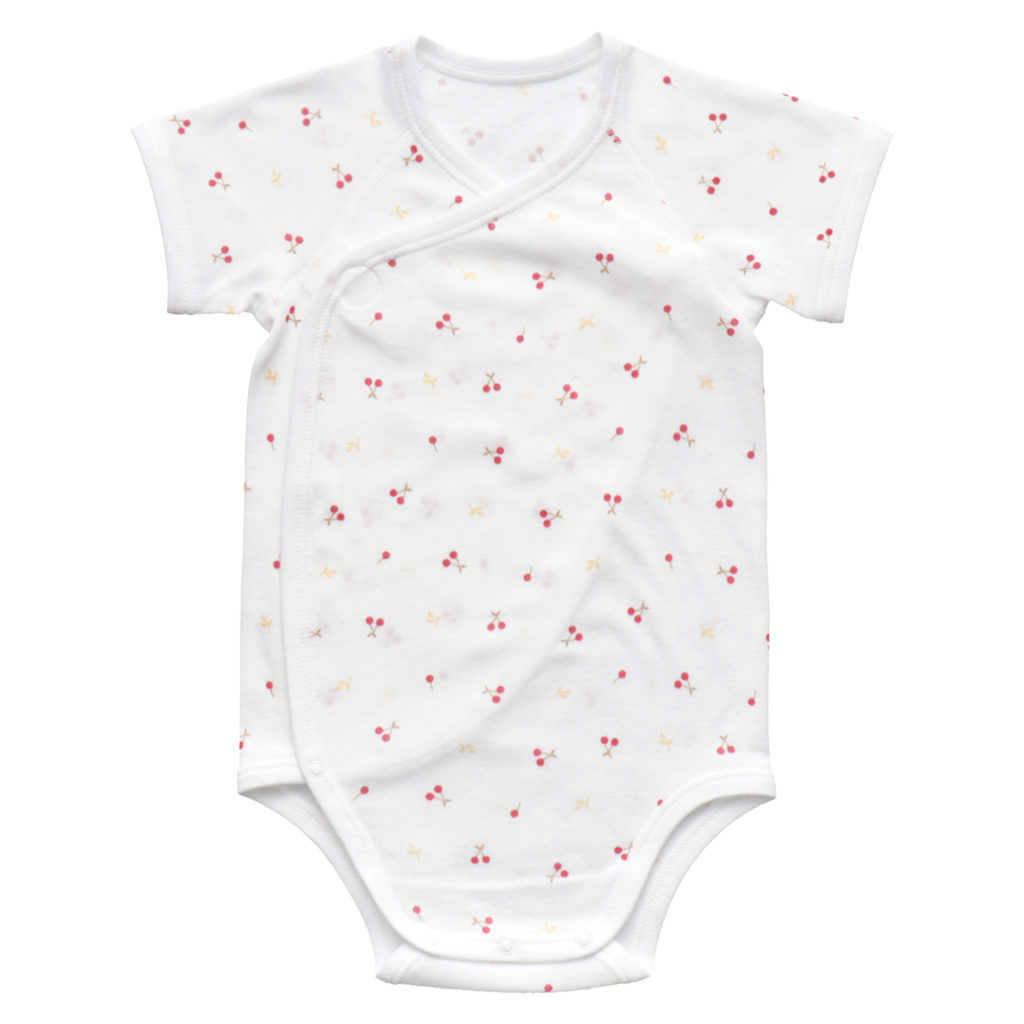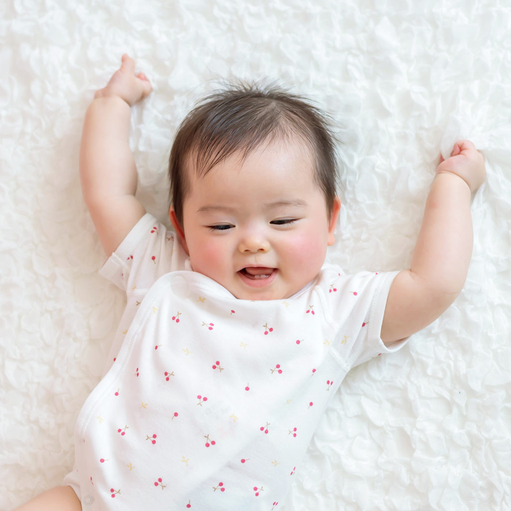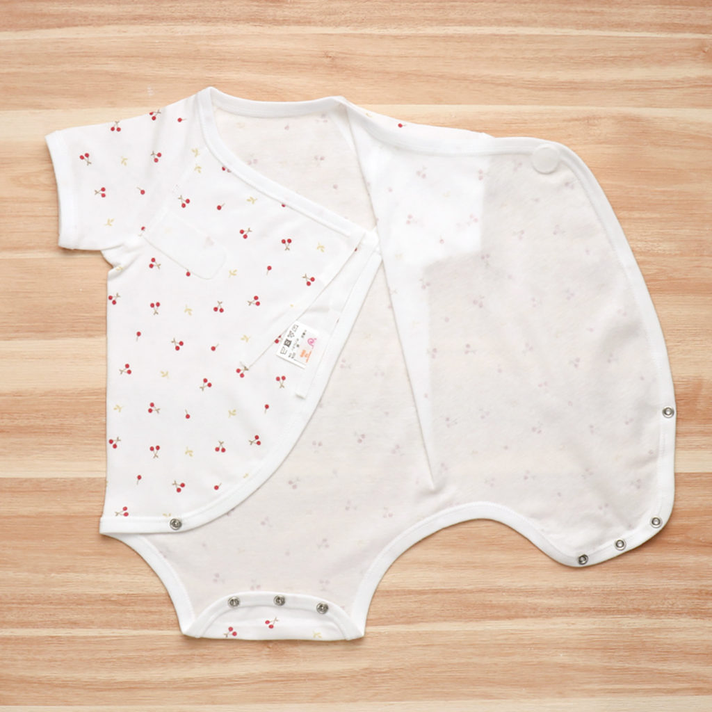 寝かせたままのお着替えもラクチンな前開きタイプで、肌着としてはもちろん、お部屋着としても大活躍の人気アイテムです。