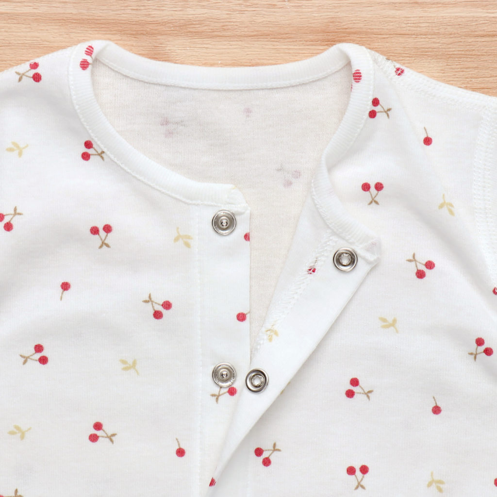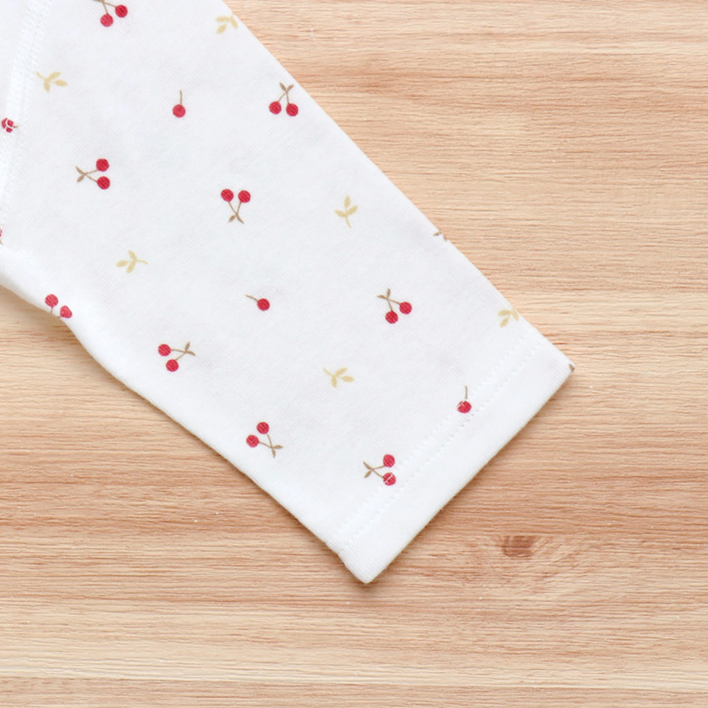 小さなさくらんぼがかわいいデザインの長袖長ズボンタイプのボディオール。 オールシーズンお使い頂けるフライス素材は、伸縮性があり、肌にフィットして汗をよく吸収してくれます。 シンプルなデザインですっきりとしたシルエットのボディオールはデイリーウェアとして大活躍のアイテムです。