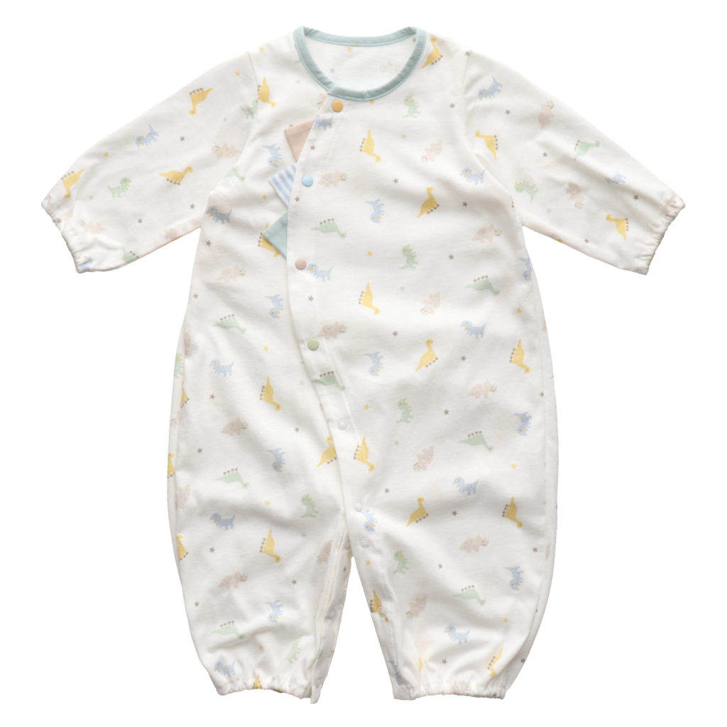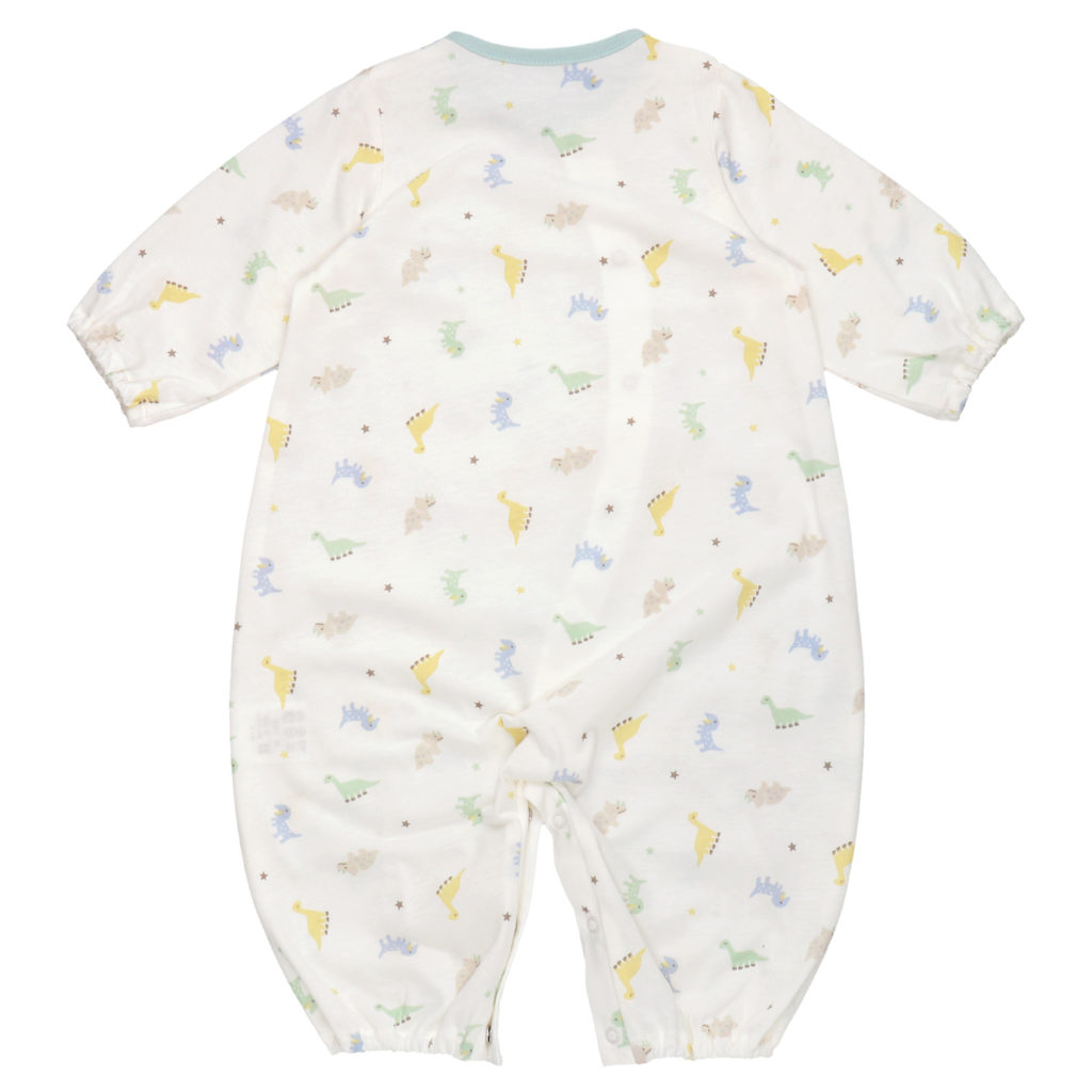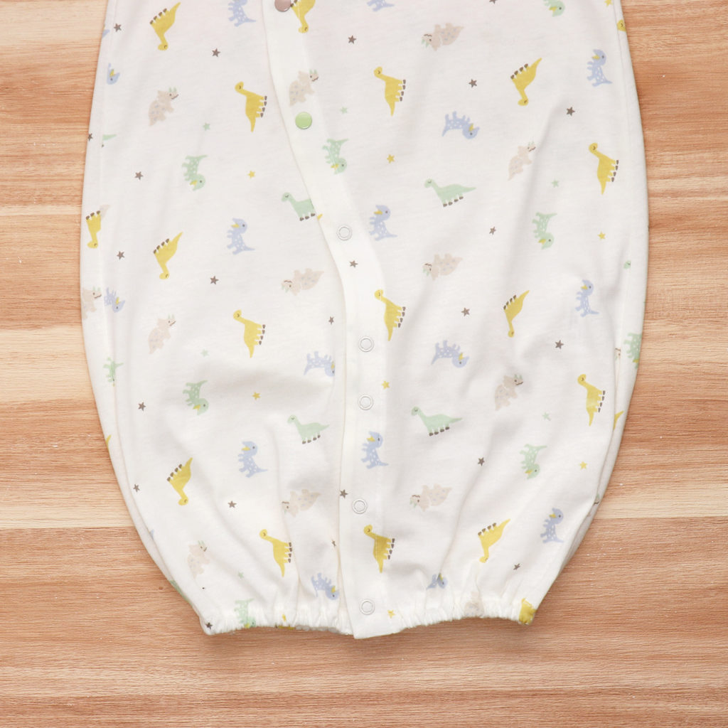 生まれてすぐは足を包むドレスタイプ。 足をばたばた出来るようになったらボタンを留め替えて、カバーオールタイプにもなるツーウェイ仕様です。