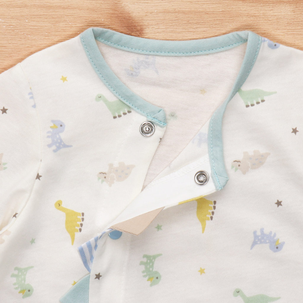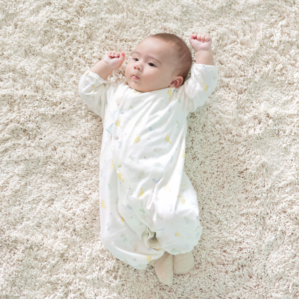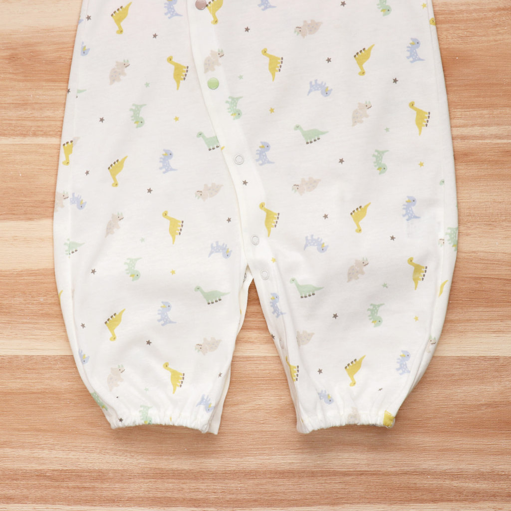 生まれてすぐは足を包むドレスタイプ。 足をばたばた出来るようになったらボタンを留め替えて、カバーオールタイプにもなるツーウェイ仕様です。