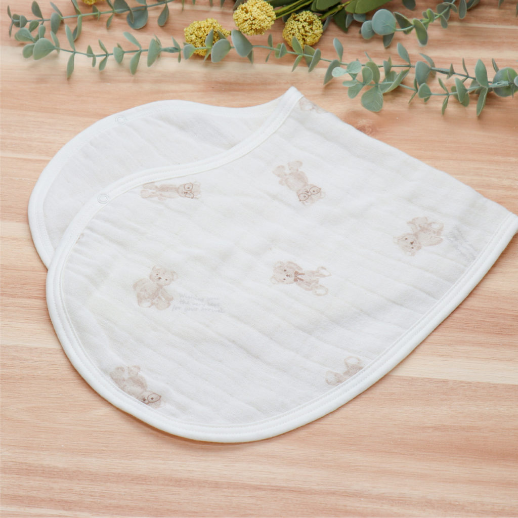 やわらかな六重ガーゼの便利なバープクロスです。授乳後、赤ちゃんのげっぷや吐き戻しでママのお洋服が汚れるのを防ぎます。スナップを留めると、赤ちゃんのよだれかけとしてもお使いいただけます。やわらかな六重ガーゼで、よだれをしっかり吸収し、スタイとしても使える1枚二役の便利なクロスです。ベビーとママが兼用できる便利アイテムは、ギフトのプラスワンアイテムとしてもおすすめです。
