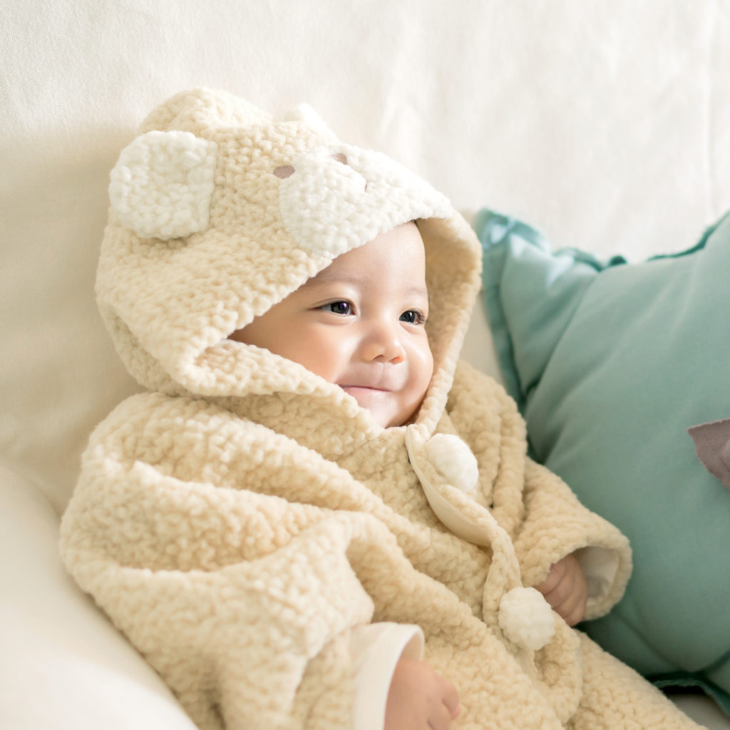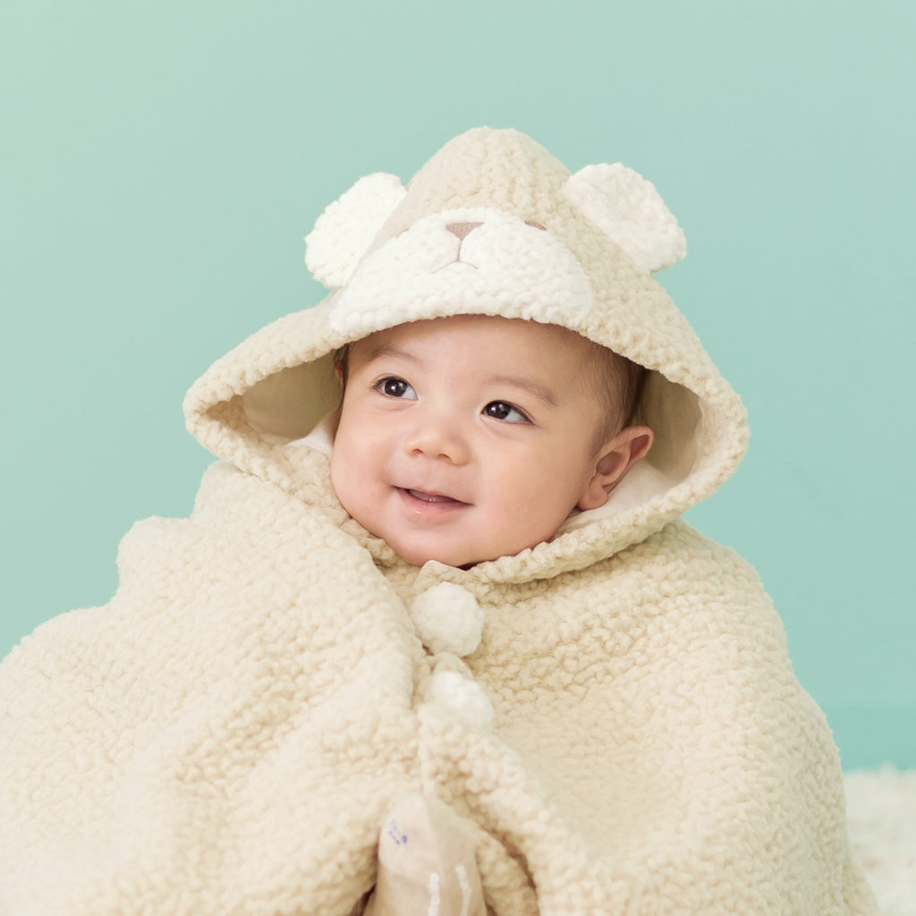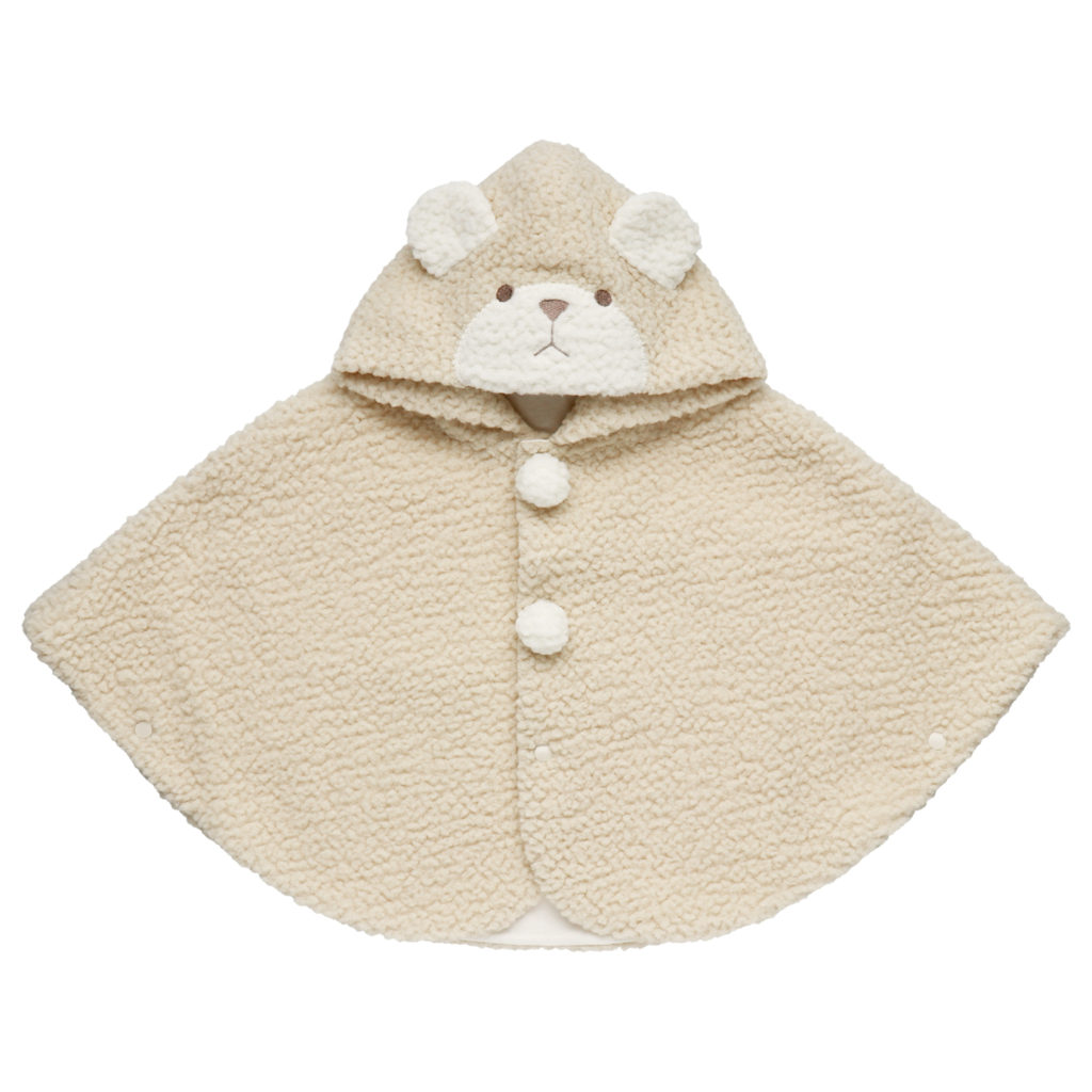 もこもこのフリースが、軽くてあったか。胸元のポンポンがアクセントのシンプルなマントは、さまざまなシーンで大活躍のおしゃれアイテムです。 さっと羽織れるマントは冬に人気の防寒アイテム。裾のボタンを留めると袖口になり手を出すこともできます。