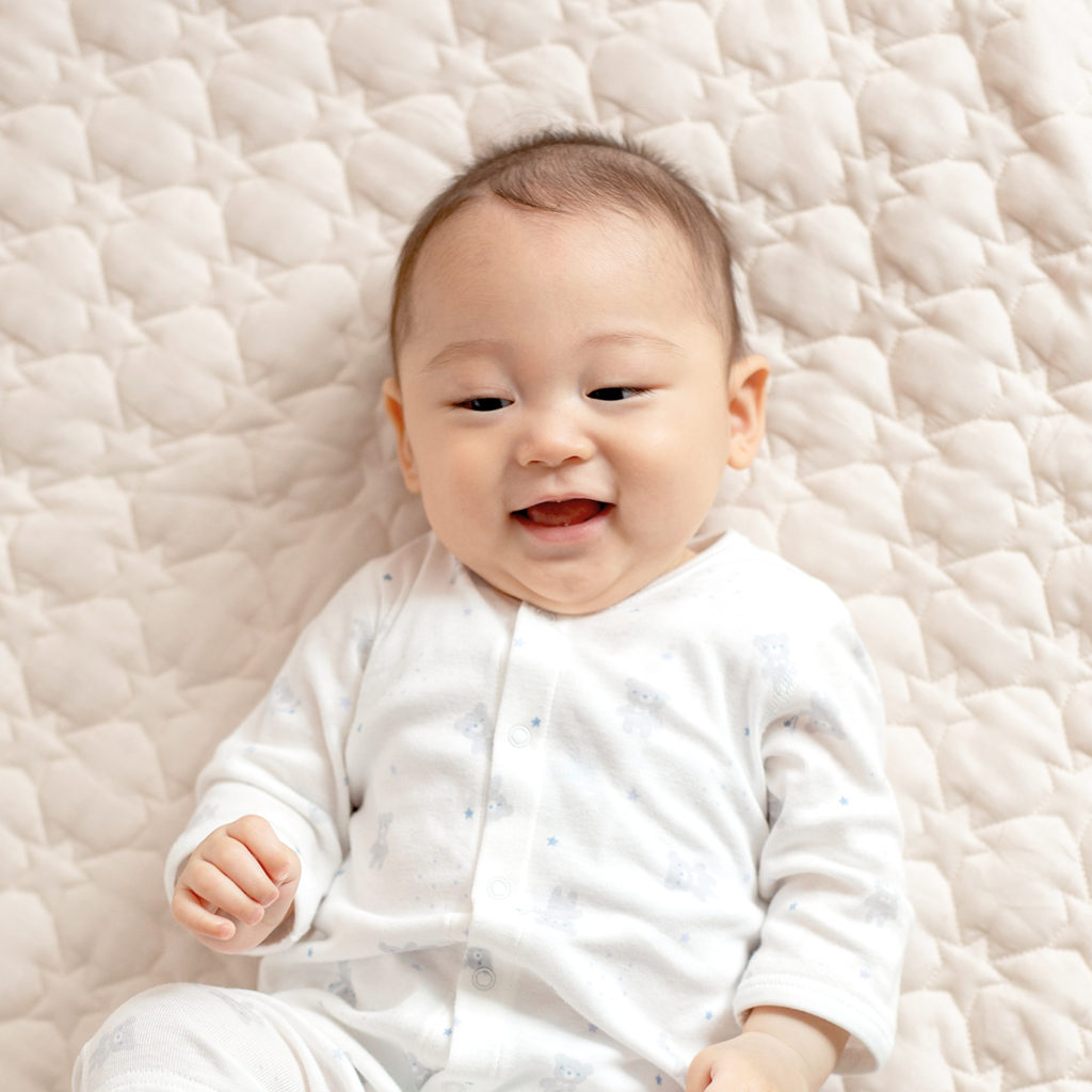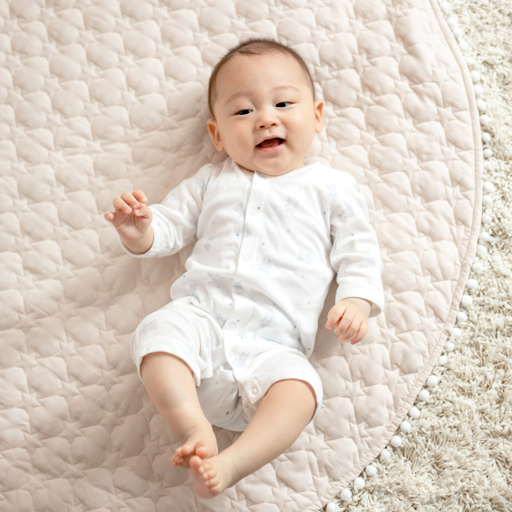 おなかが出ないので元気な赤ちゃんにも安心のボディオール。 長袖長ズボンタイプのシンプルなデザインにすっきりとしたシルエットでデイリーウェアとして大活躍のアイテムです。