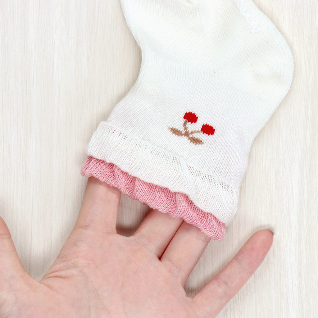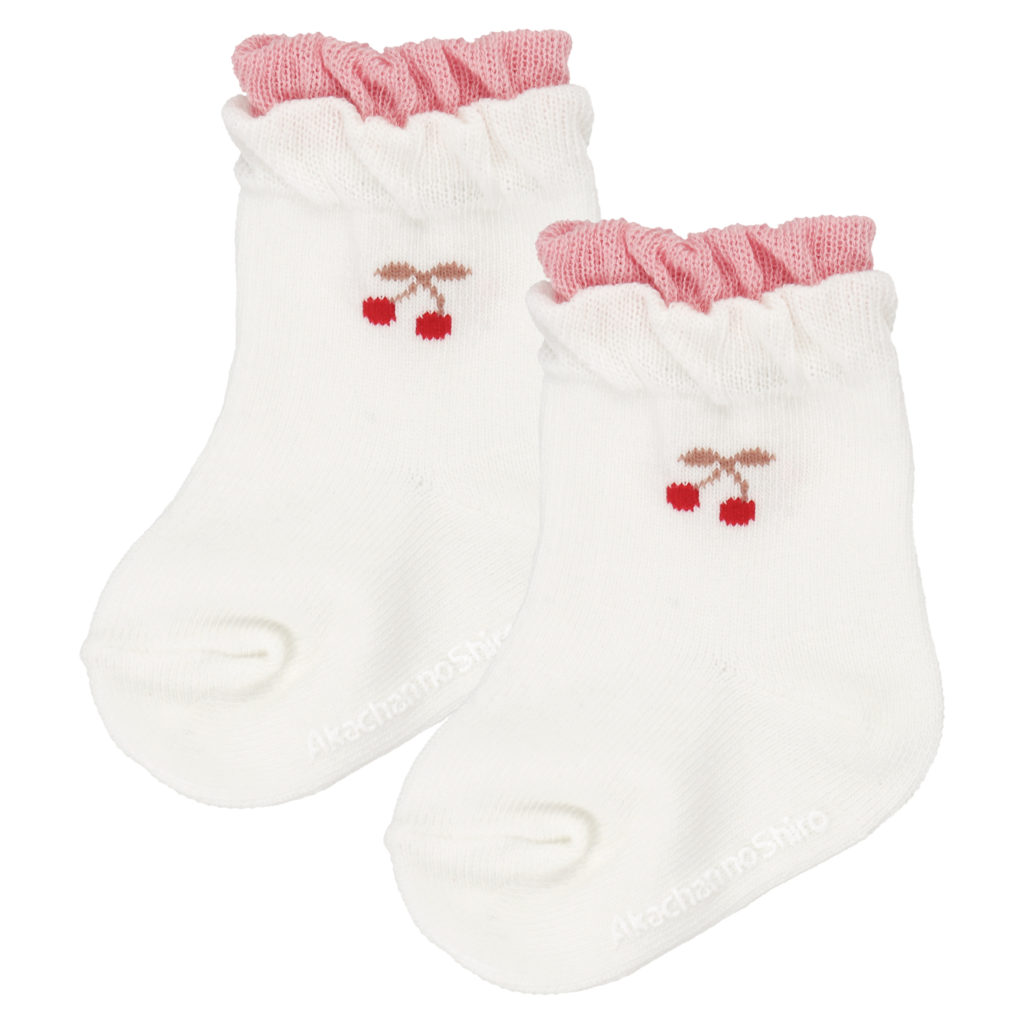 フリルとさくらんぼ柄がかわいいデザイン。おしゃれな女の子にぴったりの一足です。伸縮性のある生地で赤ちゃんの脚をやさしく包みます。ご自宅用はもちろん、ちょっとしたプレゼントとしてもおすすめの商品です。