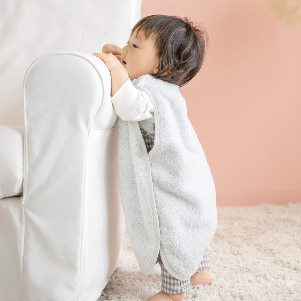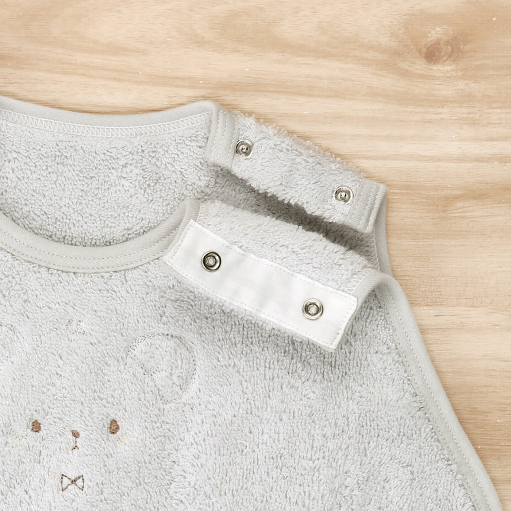 ふんわり柔らかな肌ざわりのタオルスリーパーです。 おなかが出ないので、寝冷え対策に最適。 両脇と肩が開くので、寝かせたままの着せ替えもスムーズにできます。