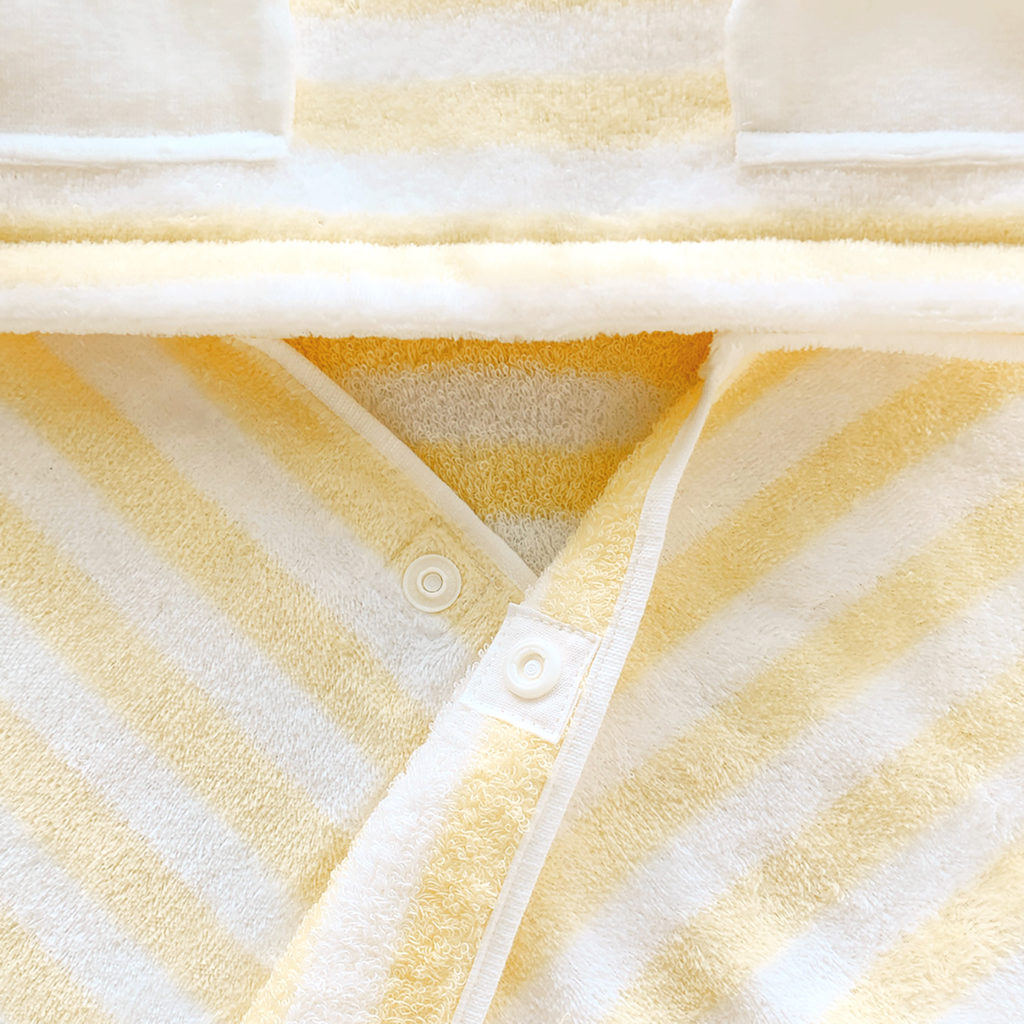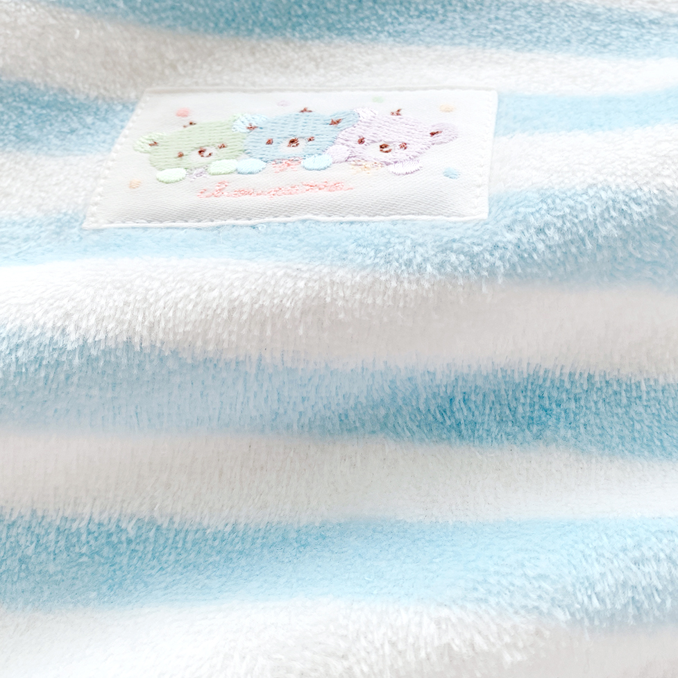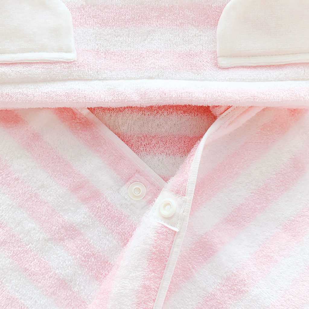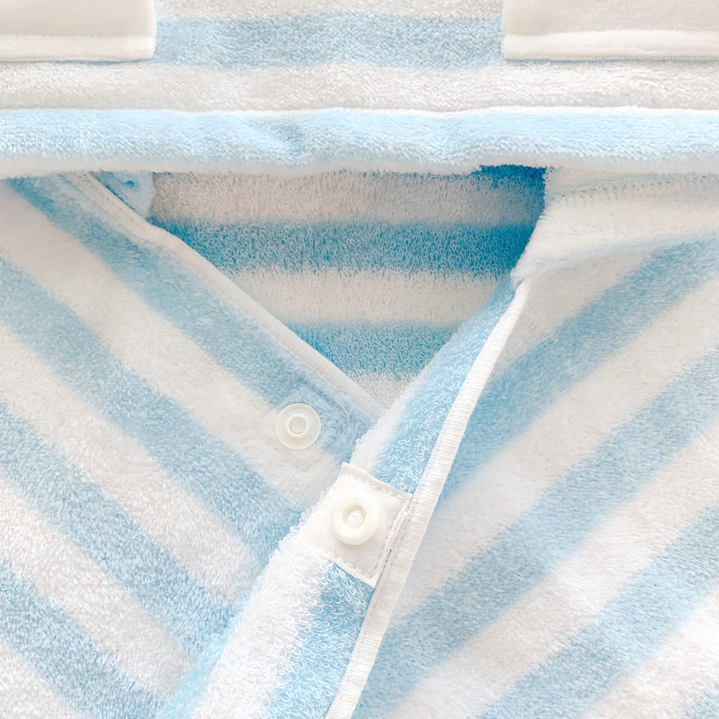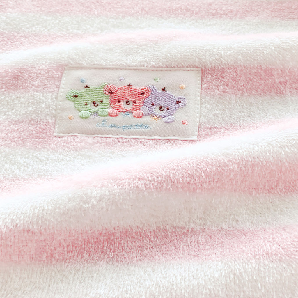 シンプルなボーダーとくまの刺繍がかわいいフード付きバスタオルです。今治タオル独自の品質基準をクリアしたふわふわのタオル素材は、優れた吸水性とやわらかい肌触りが特徴。デリケートな赤ちゃんの肌に最適です。沐浴やお風呂上りに便利なアイテムです。【承認番号:第2013-265号】
