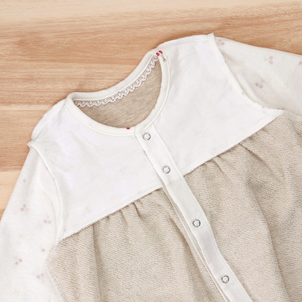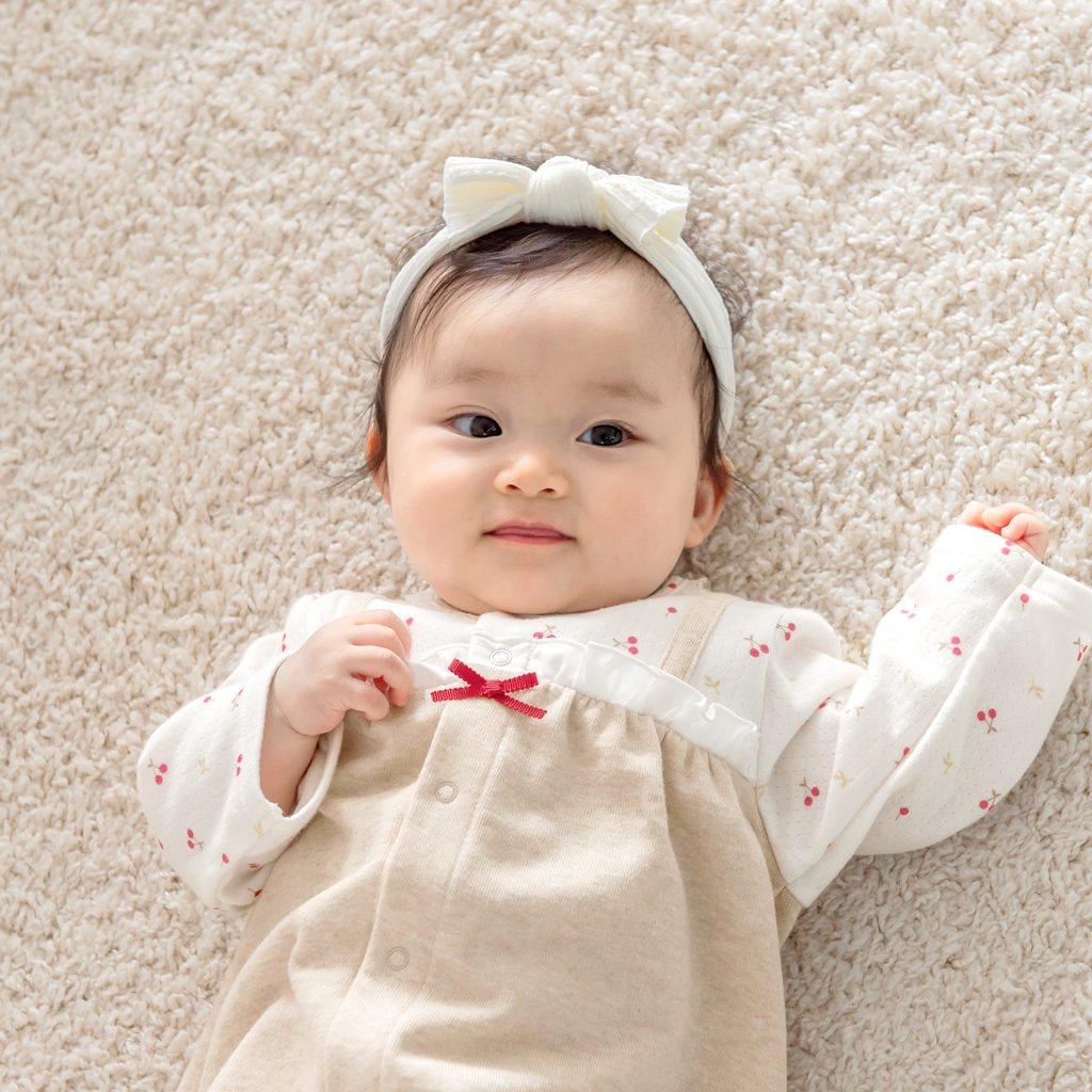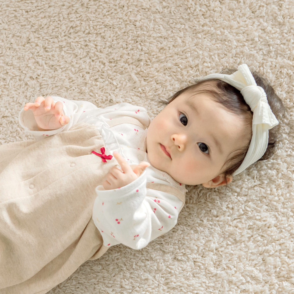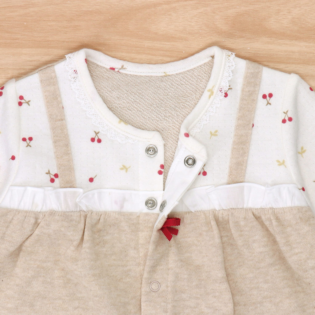 やわらかく保温性のある接結素材と裏毛で、秋から春先まで活躍します。 おなかが出ないカバーオールは元気いっぱいな赤ちゃんにぴったり。 デイリーウェアとして定番のアイテムです。