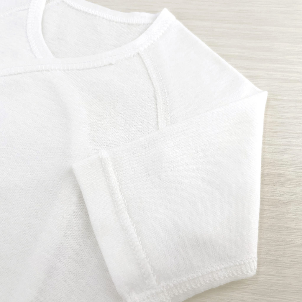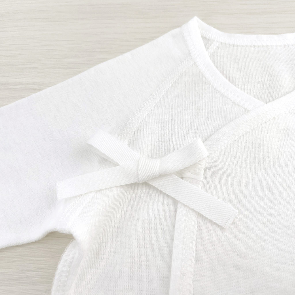 世界の良質コットンの中でも繊維が細くて長い超長綿のひとつで、なめらかな風合いと肌触りの高品質素材です。 伸縮性があり、肌にフィットして汗をよく吸収。オールシーズンお使いいただける素材です。 デリケートな赤ちゃんの肌に刺激を与えないように縫い目は平面縫製を採用。 型くずれしにくい衿のパイピングやほつれないひも先など、ベビー用品専門メーカのこだわりが詰まった肌着です。