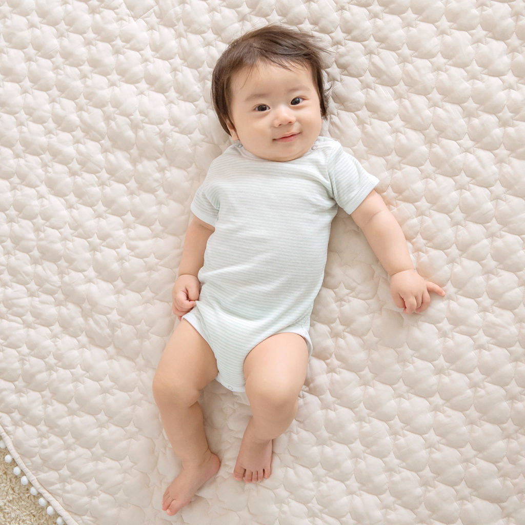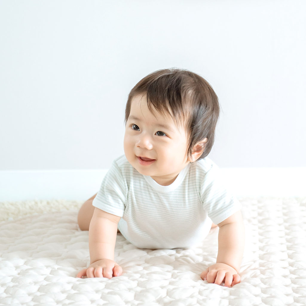 首がすわった後は、上からすっぽりかぶれる「かぶりタイプ」の肌着がとっても便利!抱っこしても、元気にハイハイしてもお腹が出る心配のないロンパース型の肌着です。 伸縮性に優れたフィット感抜群のフライス素材を使用。 汗をしっかり吸収し、オールシーズン快適です。 肌着としてはもちろん、お部屋着としても大活躍の人気アイテムです。