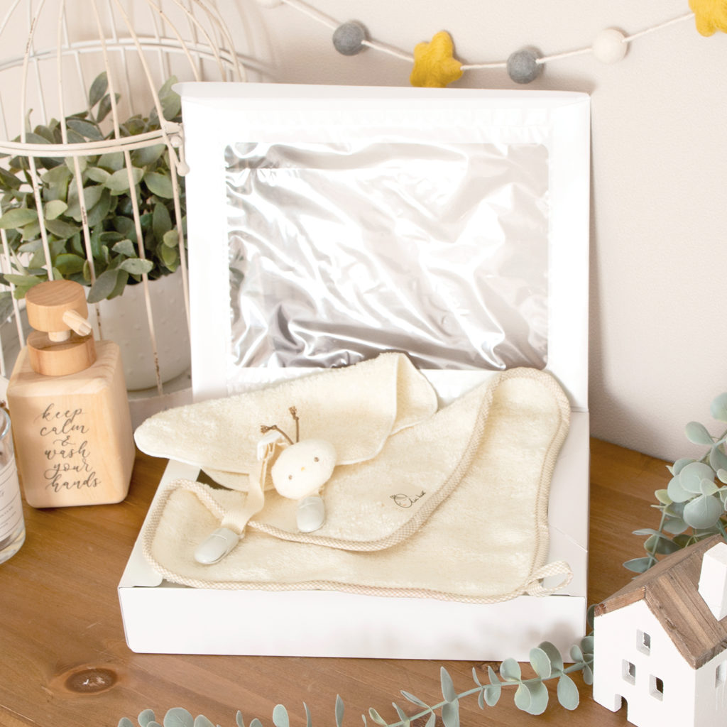 ふんわりとたっぷり空気を含んだやわらかなタオル「エアーかおるタオル」素材。 軽くてふわふわの肌にやさしい使い心地です。 実用的なスタイやハンカチは出産のお祝いにぴったりのギフトです。