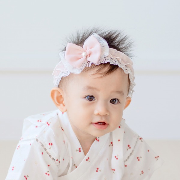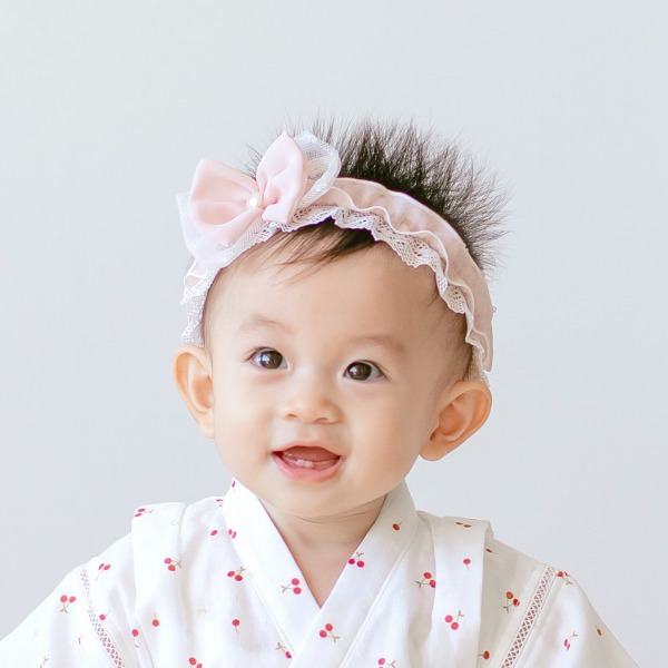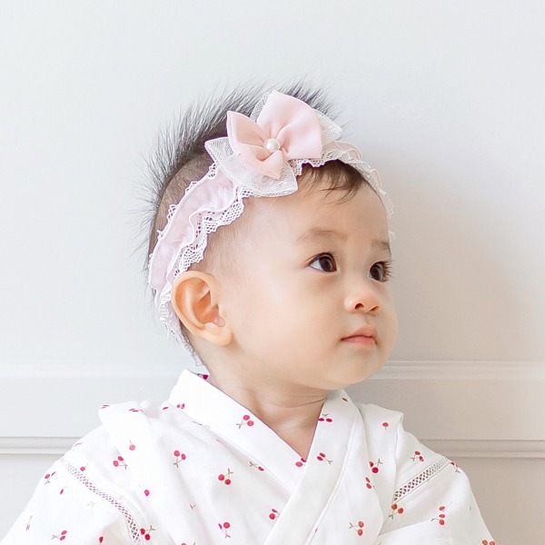 華やかなレースや飾りが付いたヘアバンドです。 伸縮性のあるレースを使用しているので、頭にやさしくフィットします。 可憐で美しいレースが、女の子らしさを演出。 ご退院やお披露目はもちろん、普段使いにも活躍するアイテムです