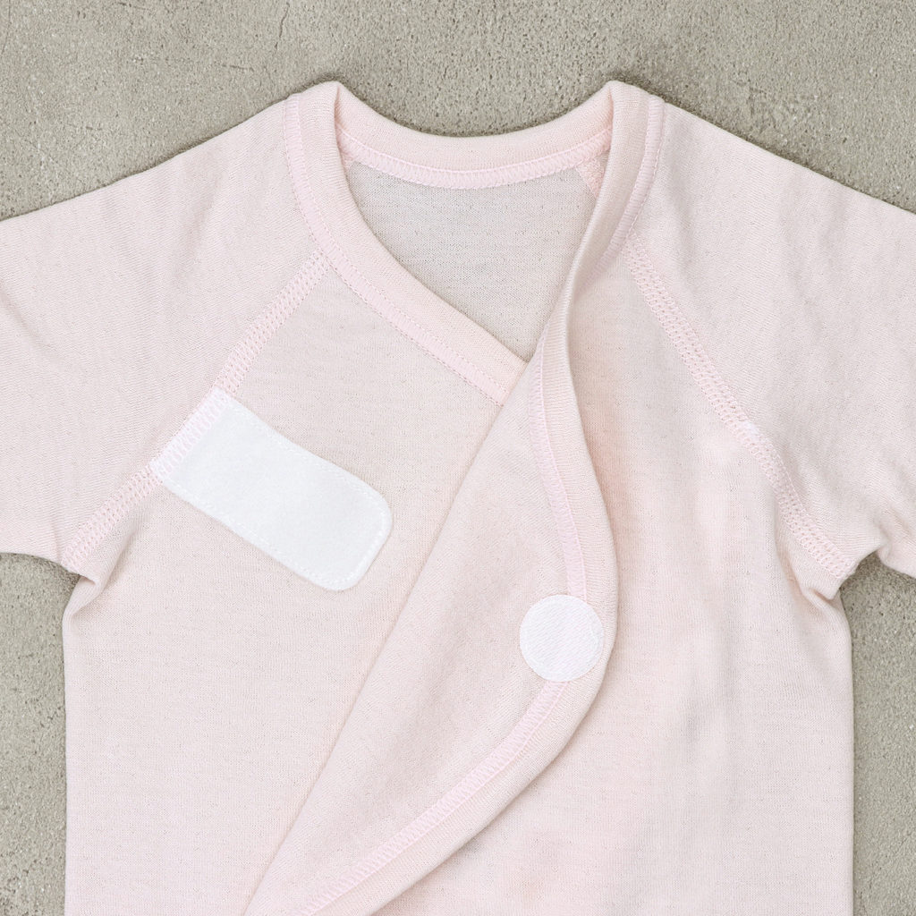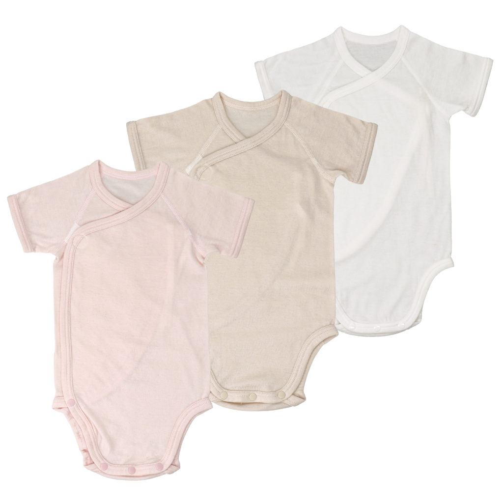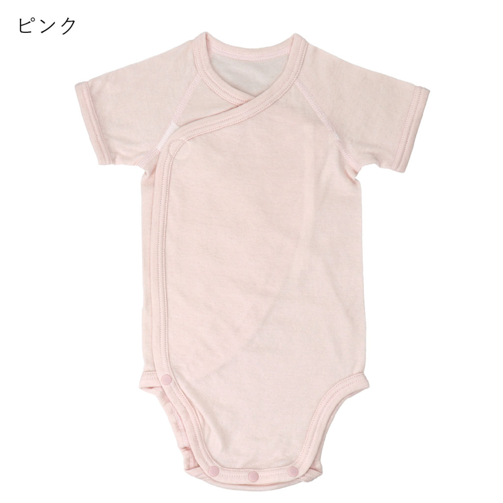 お腹が出ないロンパース型の肌着です。 前ボタンタイプで、股下まで全開できるのでお着替えやオムツ替えも簡単です。 洗っても硬くならず、軽くてふわふわのやわらかさを追求したスマイルコットンを使用。 肌への刺激が少なく、赤ちゃんのデリケートな肌にもやさしい素材です。 肌着としてはもちろん、お部屋着としても大活躍の人気アイテムです。