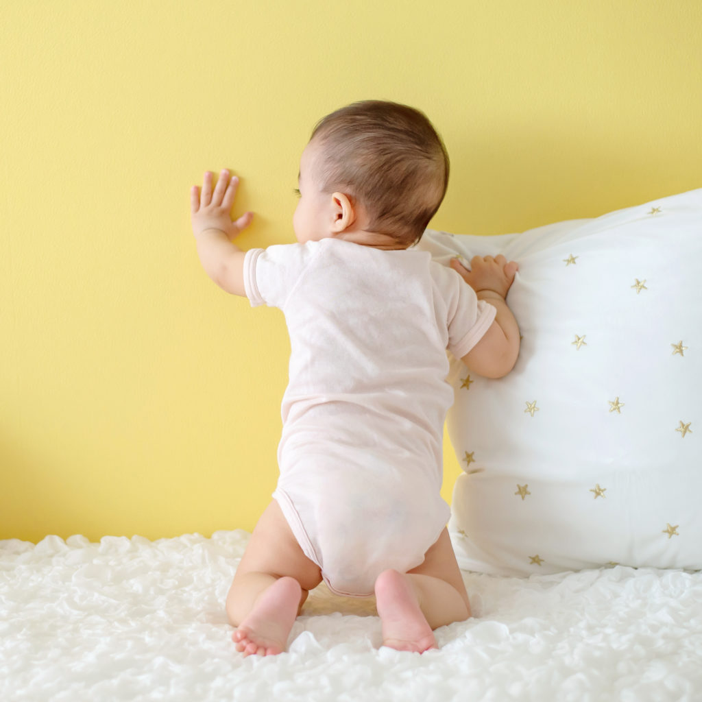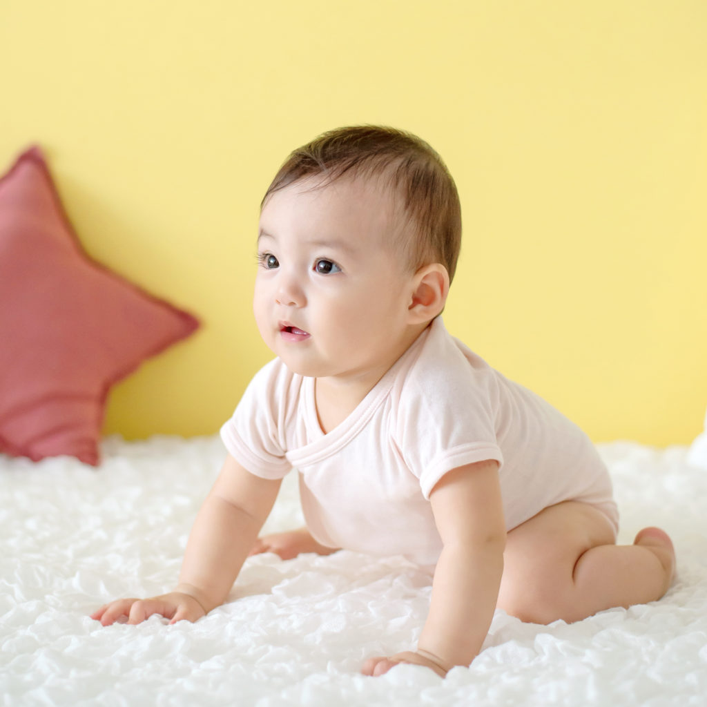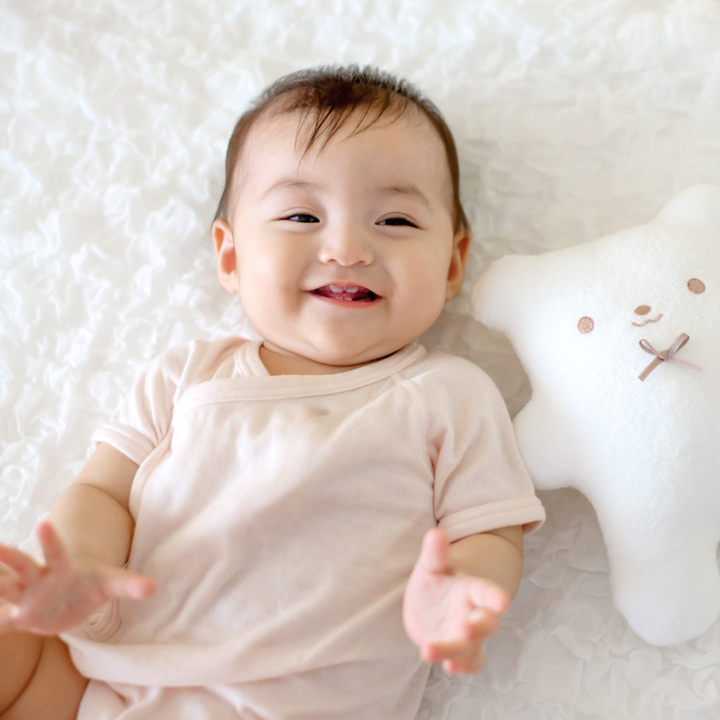 お腹が出ないロンパース型の肌着です。 前ボタンタイプで、股下まで全開できるのでお着替えやオムツ替えも簡単です。 洗っても硬くならず、軽くてふわふわのやわらかさを追求したスマイルコットンを使用。 肌への刺激が少なく、赤ちゃんのデリケートな肌にもやさしい素材です。 肌着としてはもちろん、お部屋着としても大活躍の人気アイテムです。