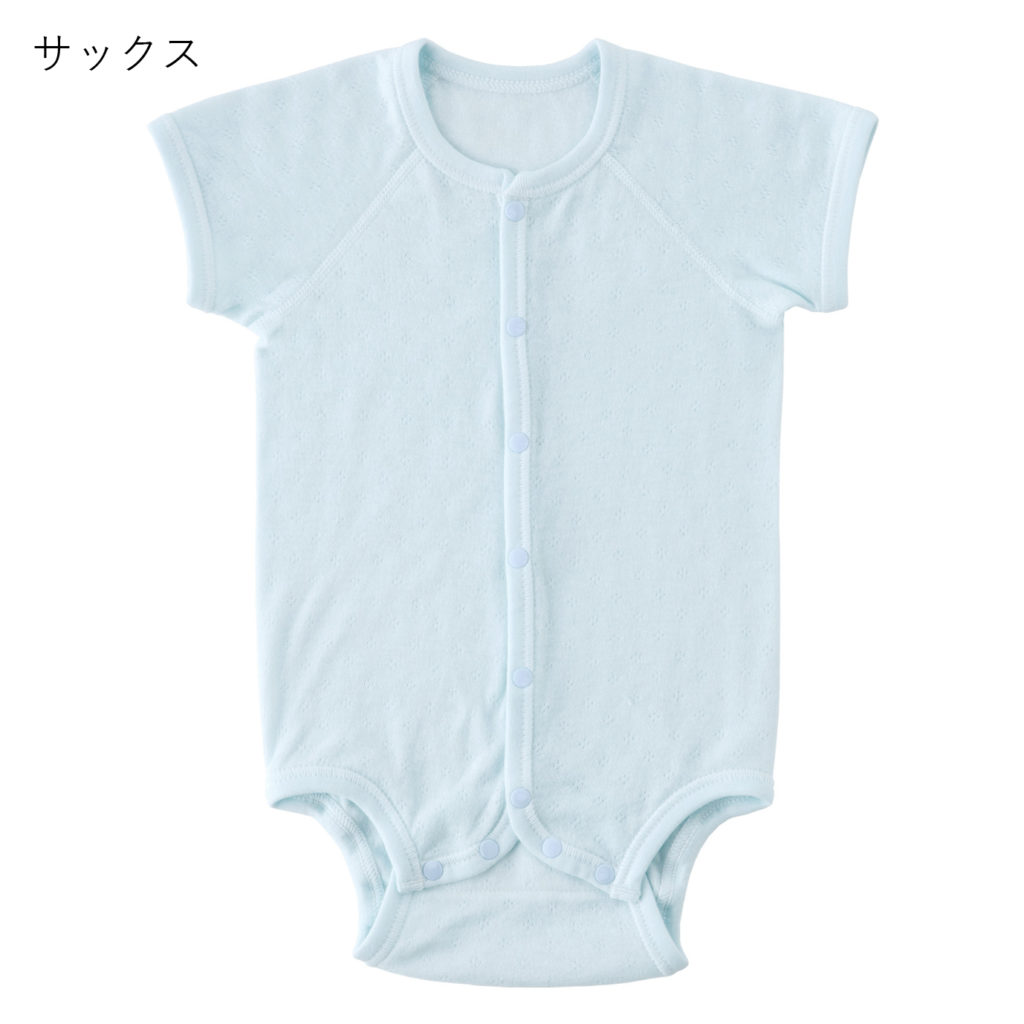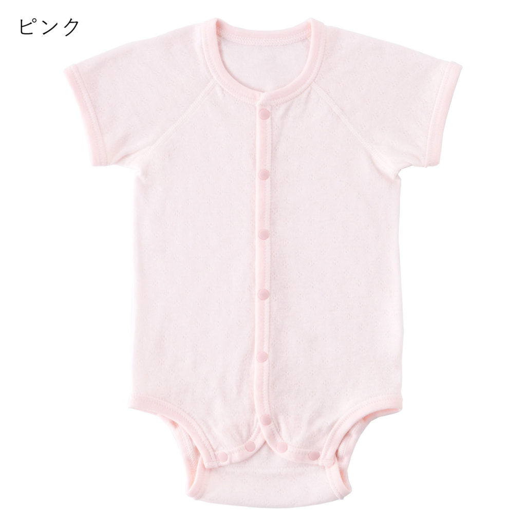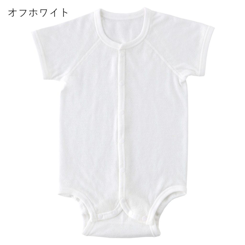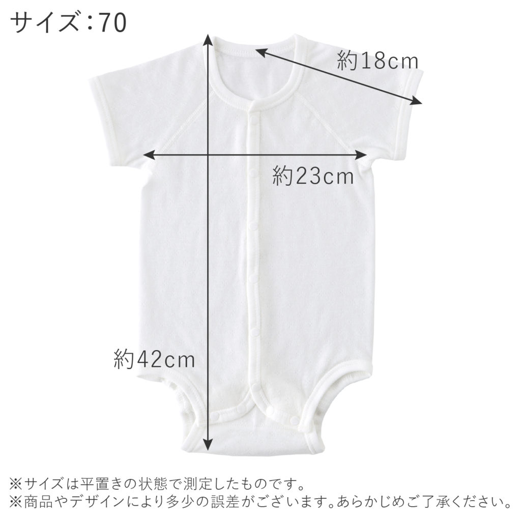 お腹が出ないロンパース型の肌着です。前ボタンタイプで、股下まで全開できるのでお着替えやオムツ替えも簡単です。 洗っても硬くならず、軽くてふわふわのやわらかさを追求したスマイルコットンを使用。肌への刺激が少なく、赤ちゃんのデリケートな肌にもやさしい素材です。 肌着としてはもちろん、お部屋着としても大活躍の人気アイテムです。