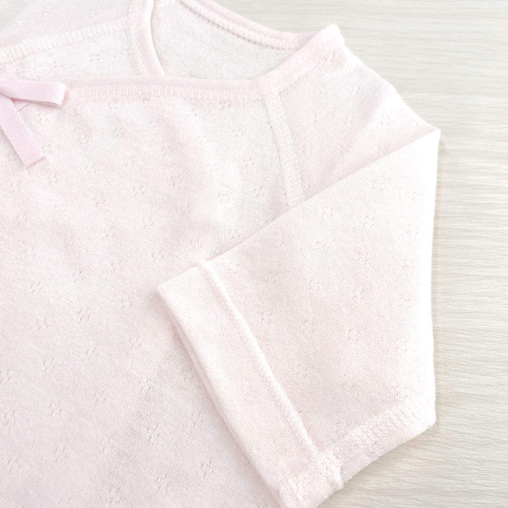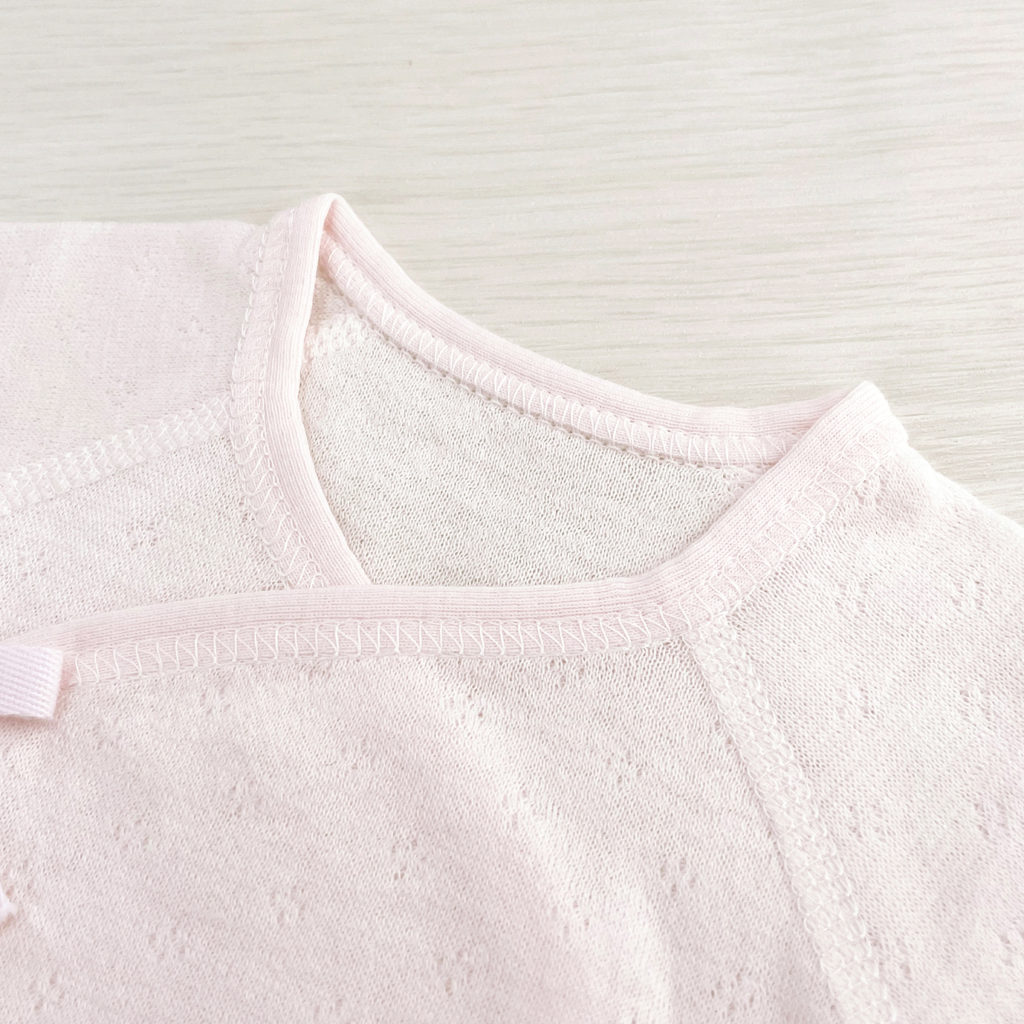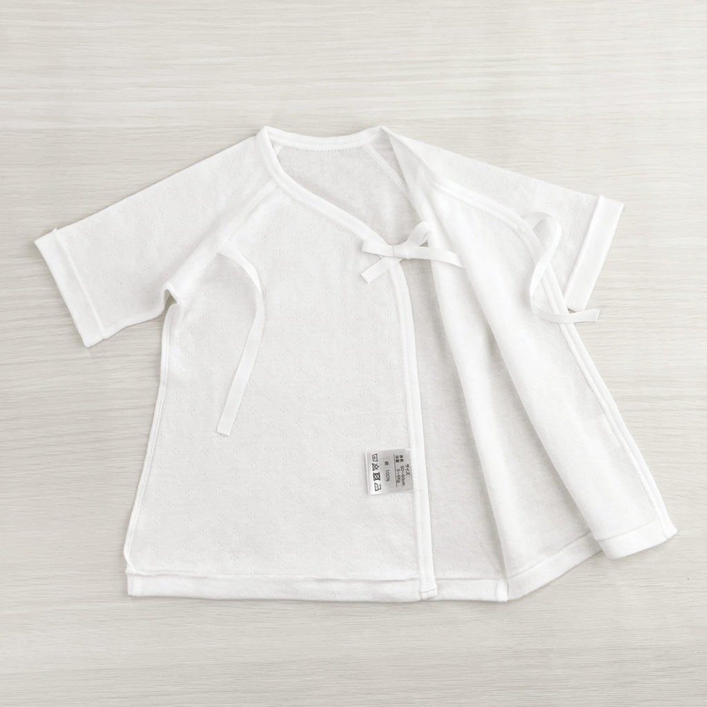 ふわふわのやわらかさを追求したスマイルコットン。 くり返しのお洗濯でも軟らかさが続き、ふんわり軽い着心地です。 フライス素材の肌着と比べ約25%の軽さです。 デリケートな赤ちゃんの肌に刺激を与えないように縫い目は平面縫製を採用。 型くずれしにくい衿のパイピングやほつれないひも先など、ベビー用品専門メーカのこだわりが詰まった肌着です。