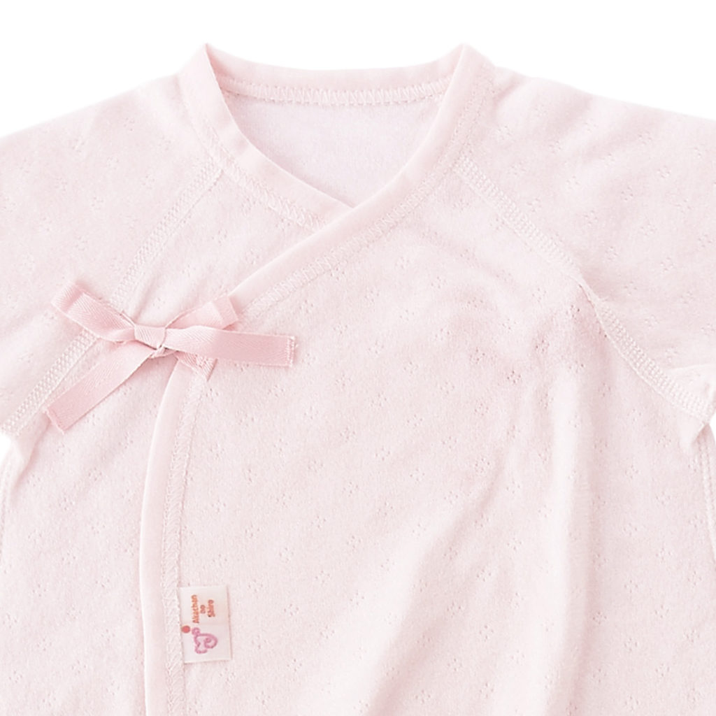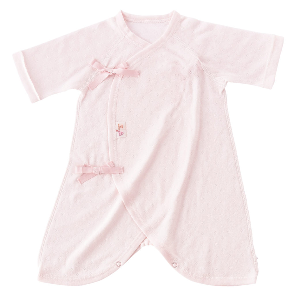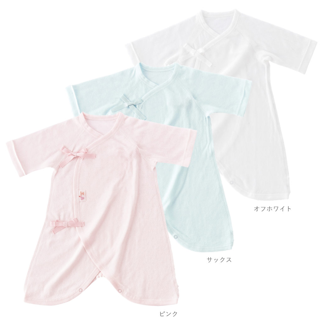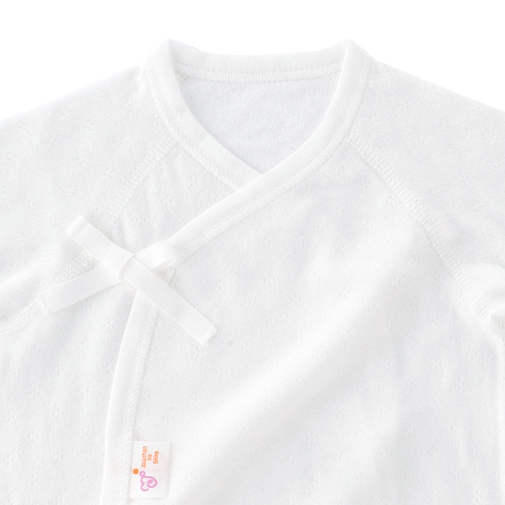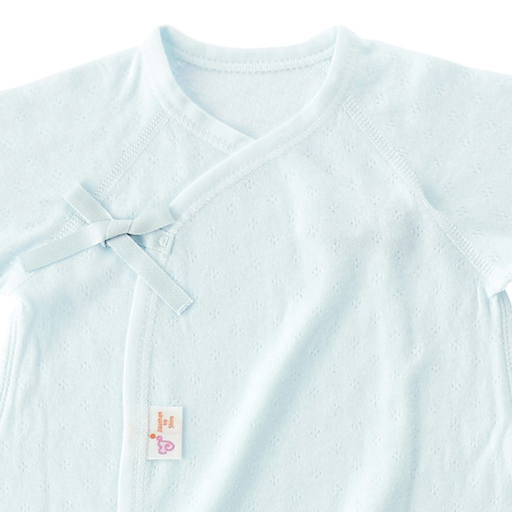 デリケートな赤ちゃんの肌に刺激を与えないように縫い目は平面縫製を採用。 型くずれしにくい衿のパイピングやほつれないひも先など、ベビー用品専門メーカのこだわりが詰まった肌着です。
