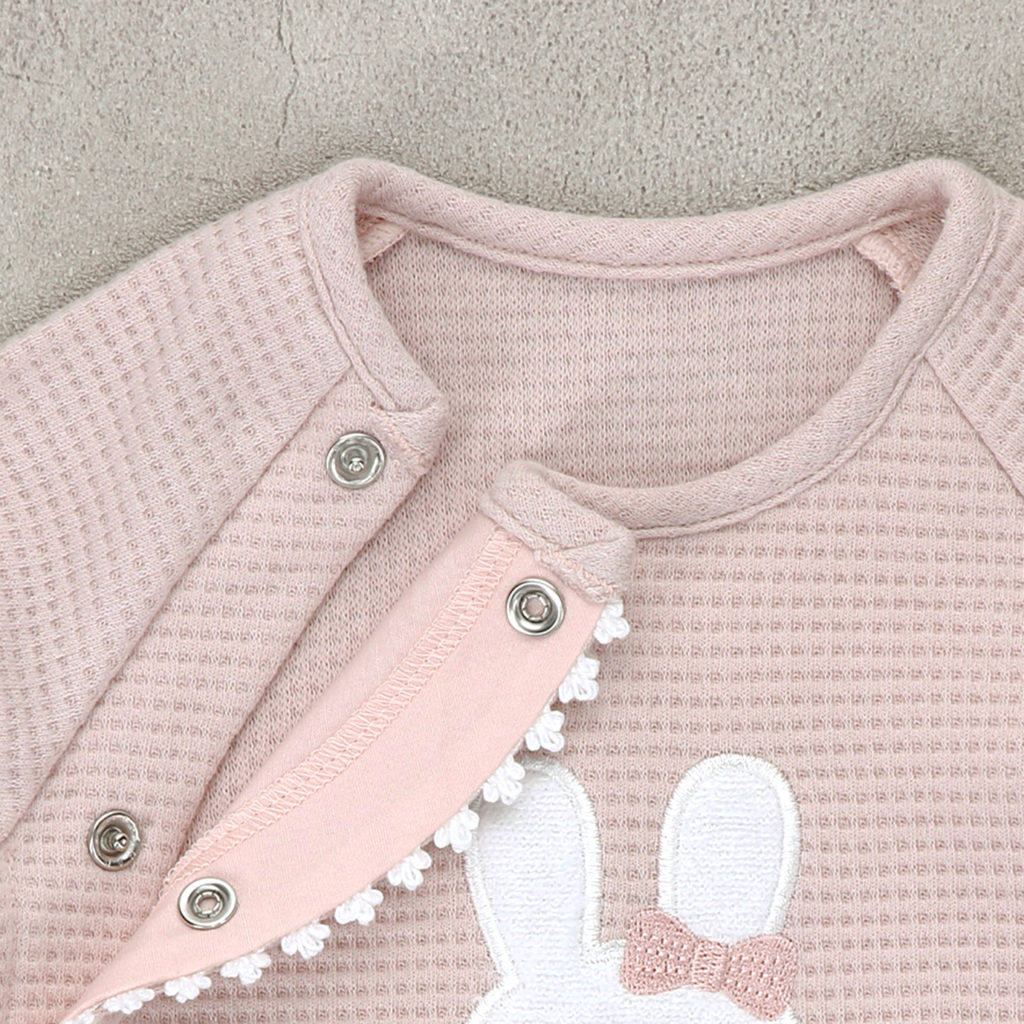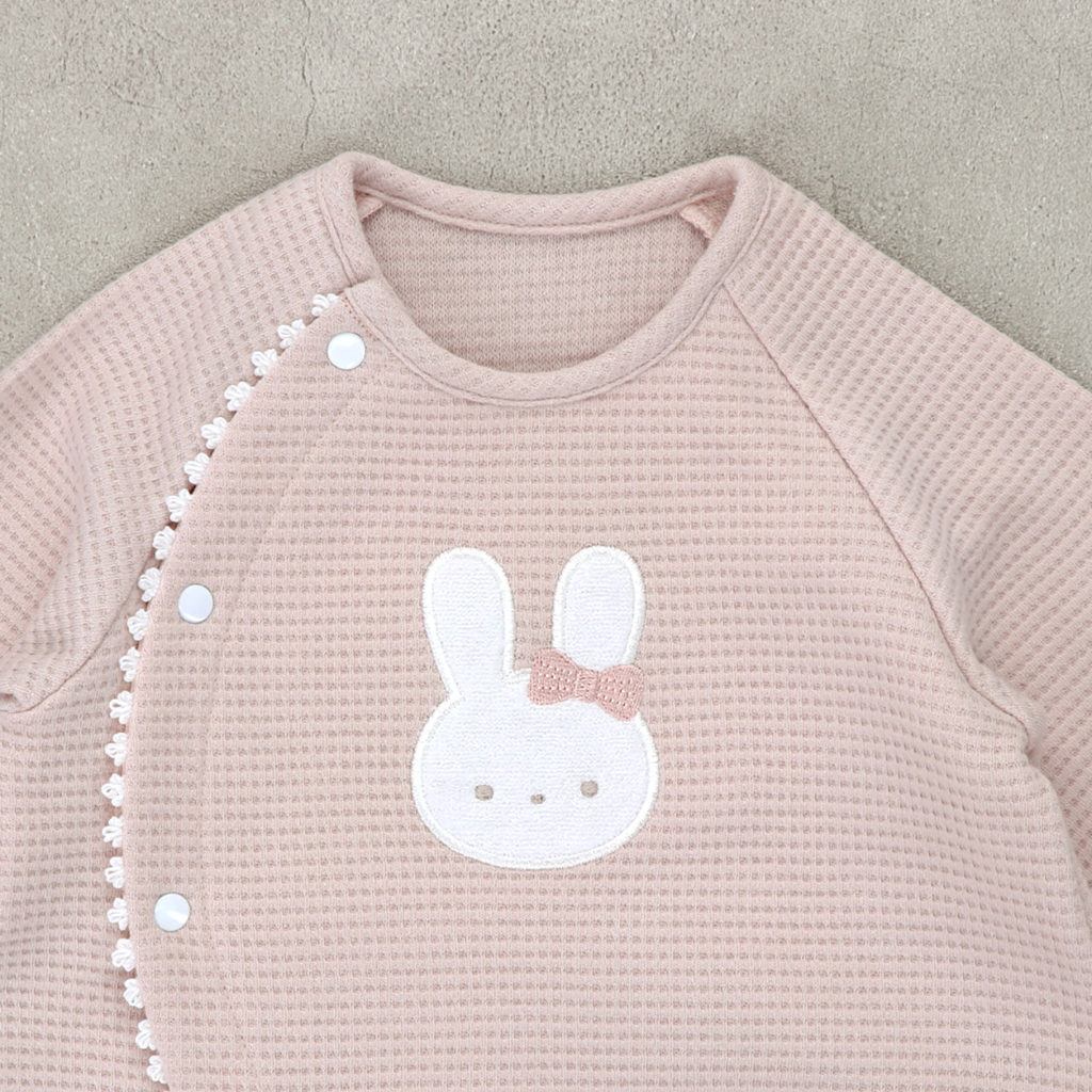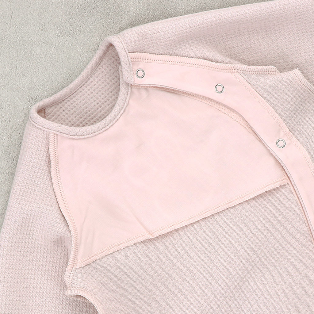 ポコポコした素材感がかわいいワッフルニット。やわらかなコットン素材は肌への刺激が少なく、 赤ちゃんのデリケートな肌にもやさしい素材。秋から春先まで活躍します。 生まれてすぐはすっぽり足を包むドレスタイプ。 足がばたばたできるようになったらボタンを留め替えてカバーオールタイプにもなるツーウェイ仕様です。