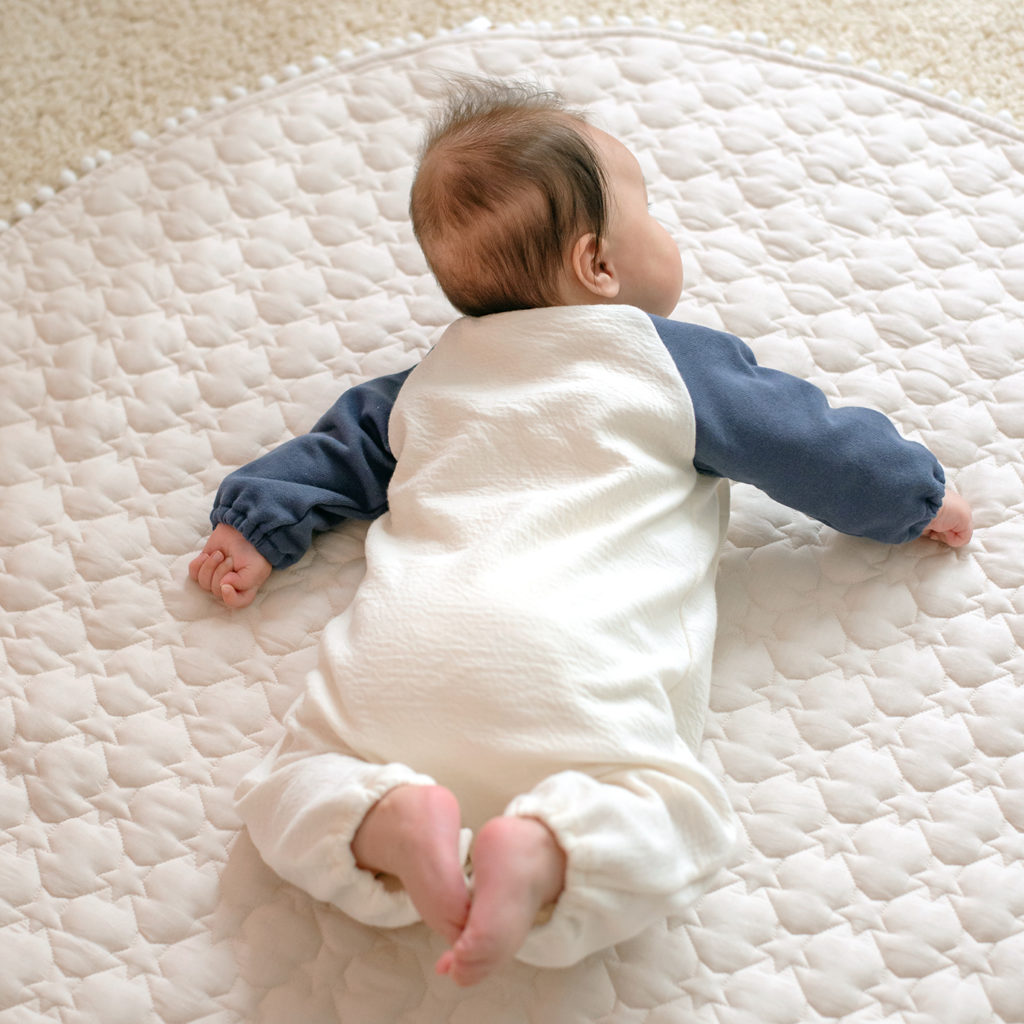 この製品はナチュラルな風合いを生かした生地のため、 繊維に黒い点などが見える場合がございます。 これは綿の葉・茎のかけらなどが残ったもので 汚れではありません。安心してお使いいただけます。