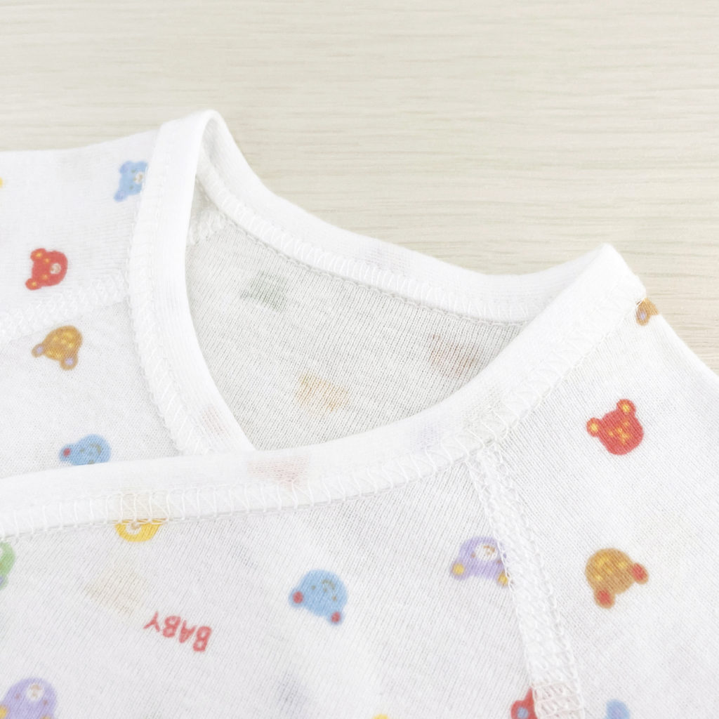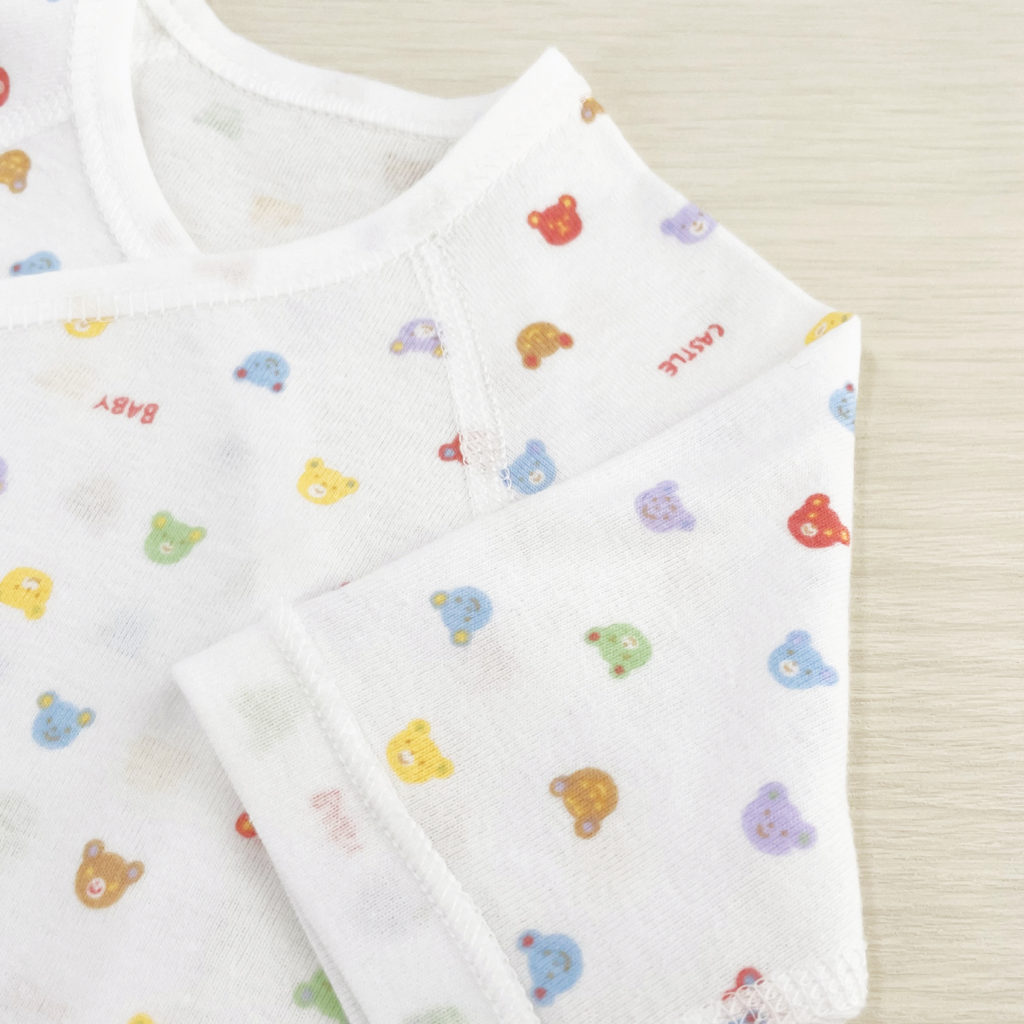 程よい厚みで保温性にすぐれ、冬だけでなく肌寒い春秋にも適したスムース素材です。 デリケートな赤ちゃんの肌に刺激を与えないように縫い目は平面縫製を採用。 型くずれしにくい衿のパイピングやほつれないひも先など、ベビー用品専門メーカのこだわりが詰まった肌着です。