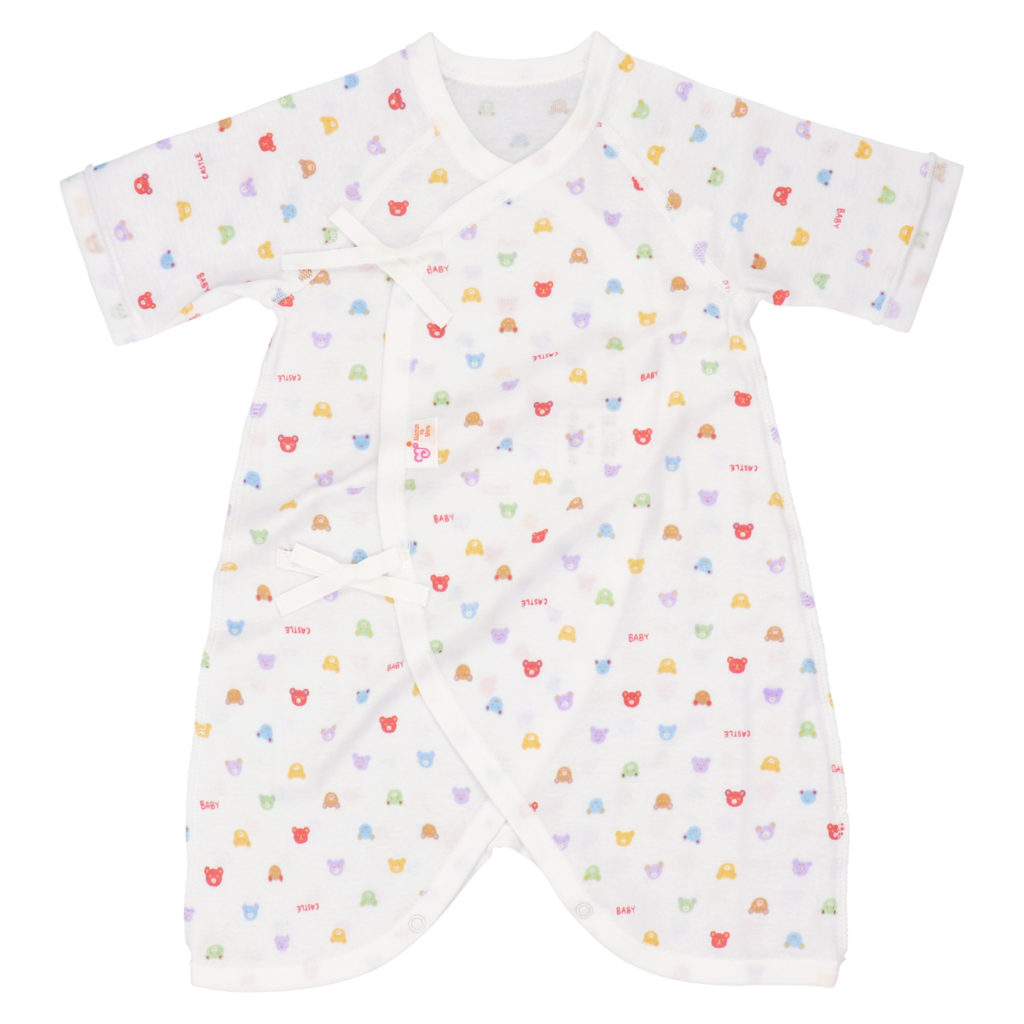 オールシーズンお使い頂けるフライス素材は、伸縮性に優れ肌にフィットして汗をしっかり吸収します。 デリケートな赤ちゃんの肌に刺激を与えないように縫い目は平面縫製を採用。 型くずれしにくい衿のパイピングやほつれないひも先など、ベビー用品専門メーカのこだわりが詰まった肌着です。