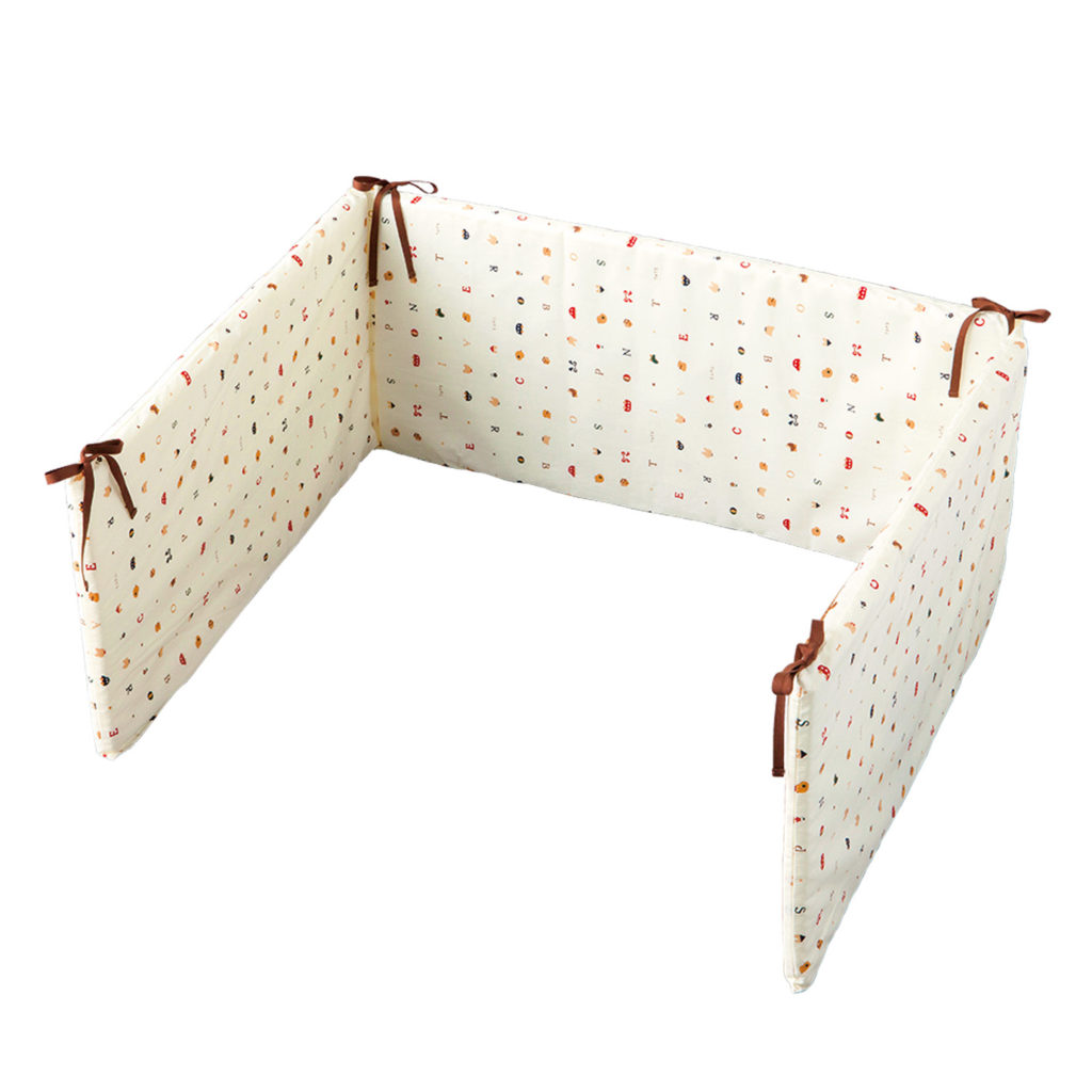 おもちゃやクマをちりばめた可愛いプリント柄。 ベッドなどで頭をぶつけないようしっかり守ってくれます。