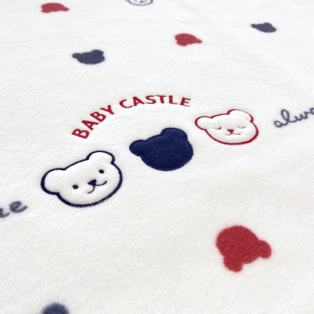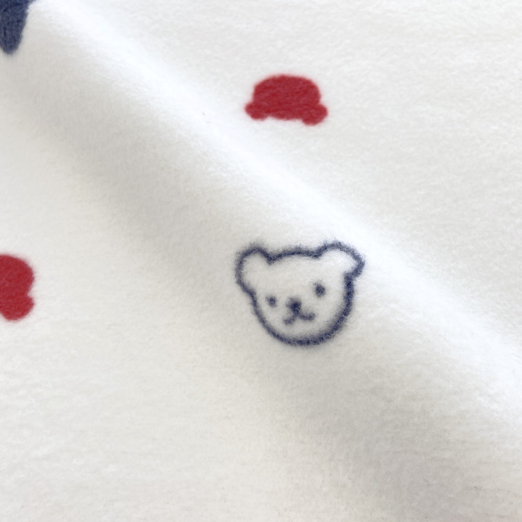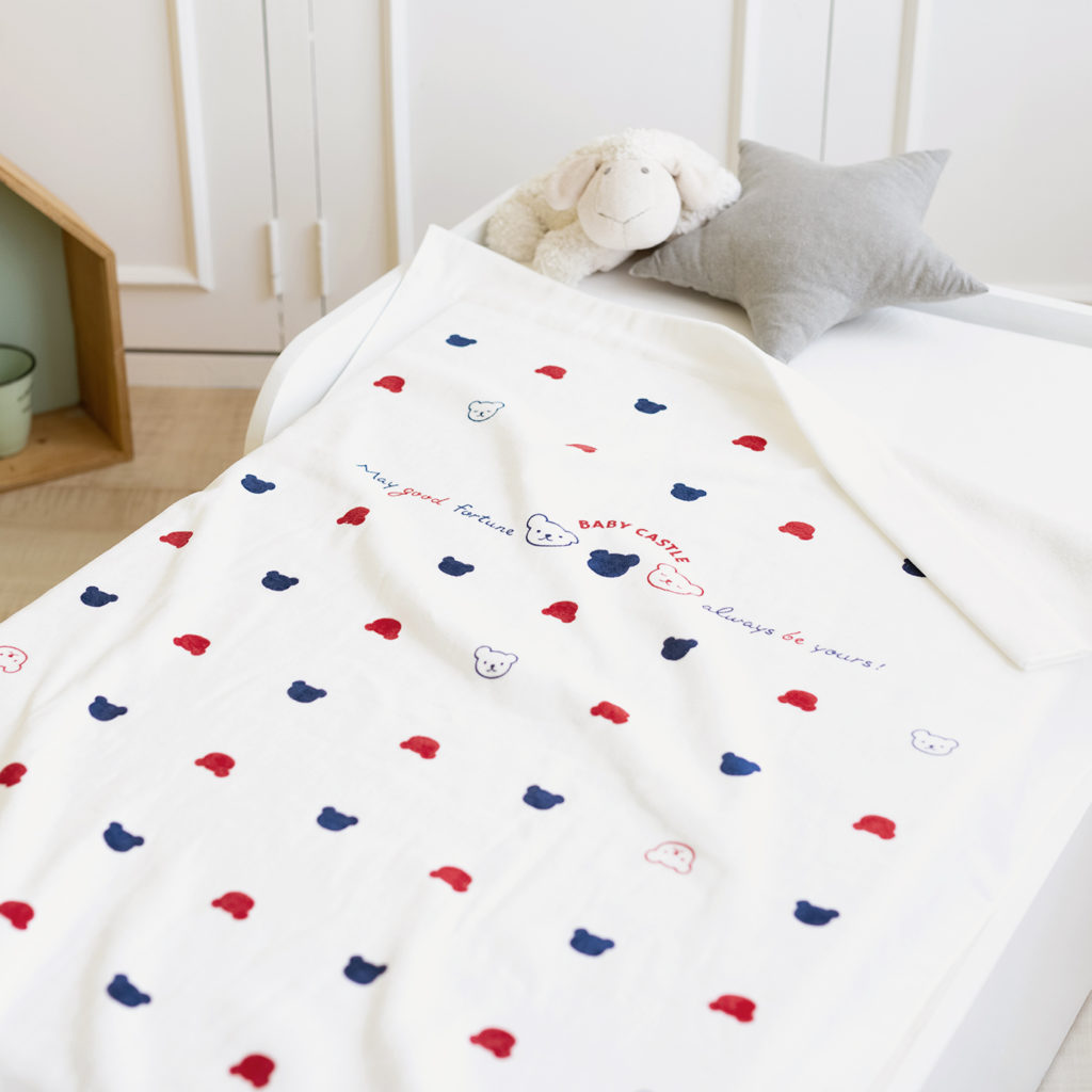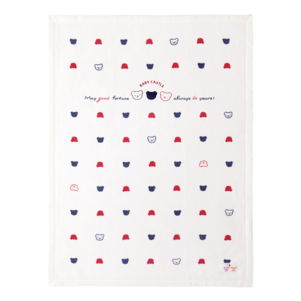 トリコロールカラーのくまさんがかわいい綿毛布です。