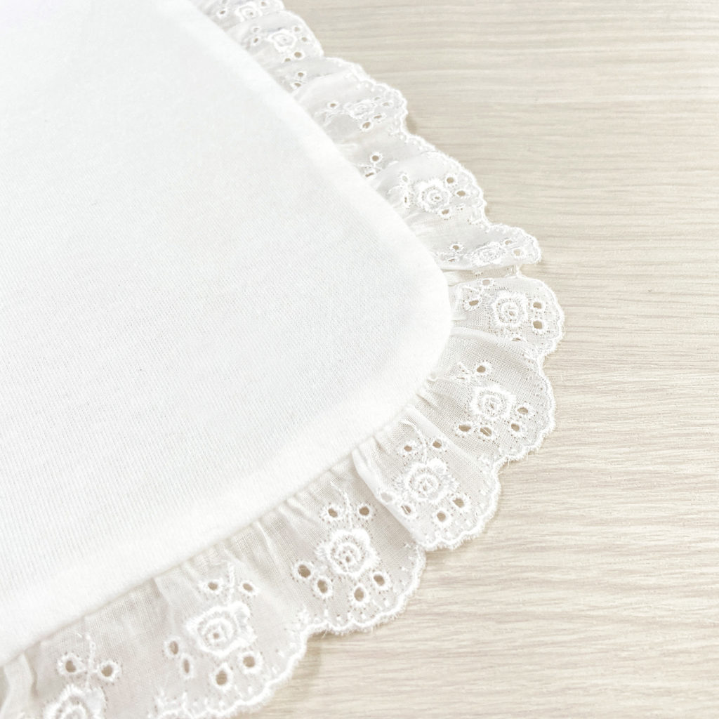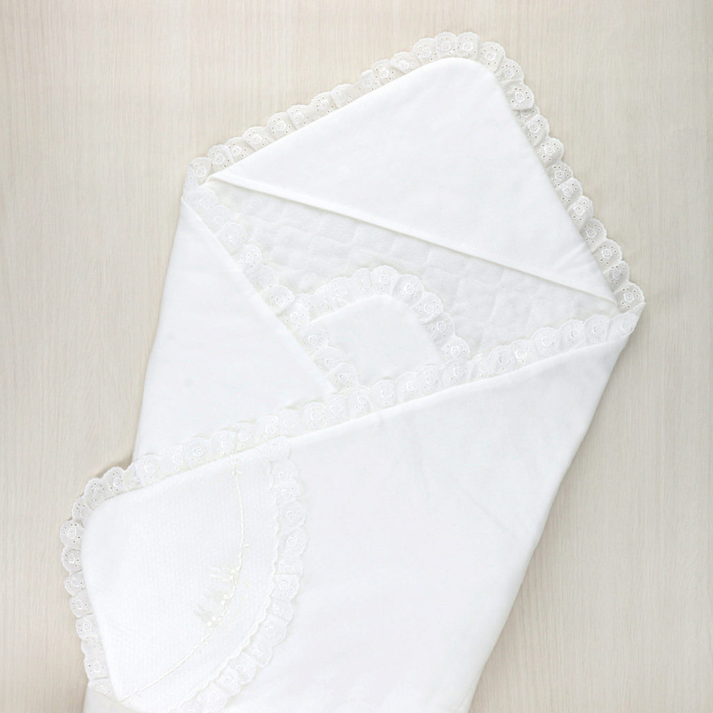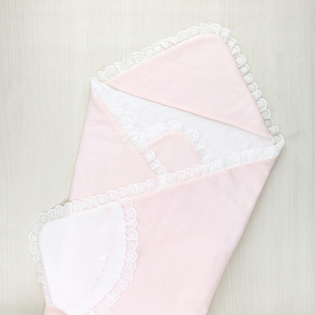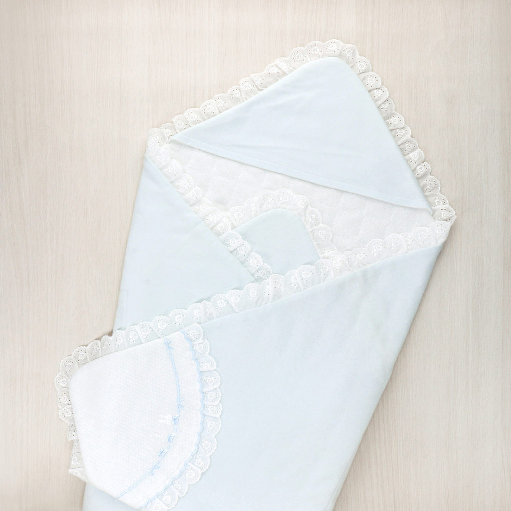 やさしいパステルカラーにうさぎの刺繍が入った中綿入りの暖かいアフガンです。表裏の素材は綿100%。レース使いのエレガントなデザインは退院やお出かけにもおすすめです。包んだり掛けたり敷いたり色々使える便利なアイテムです。