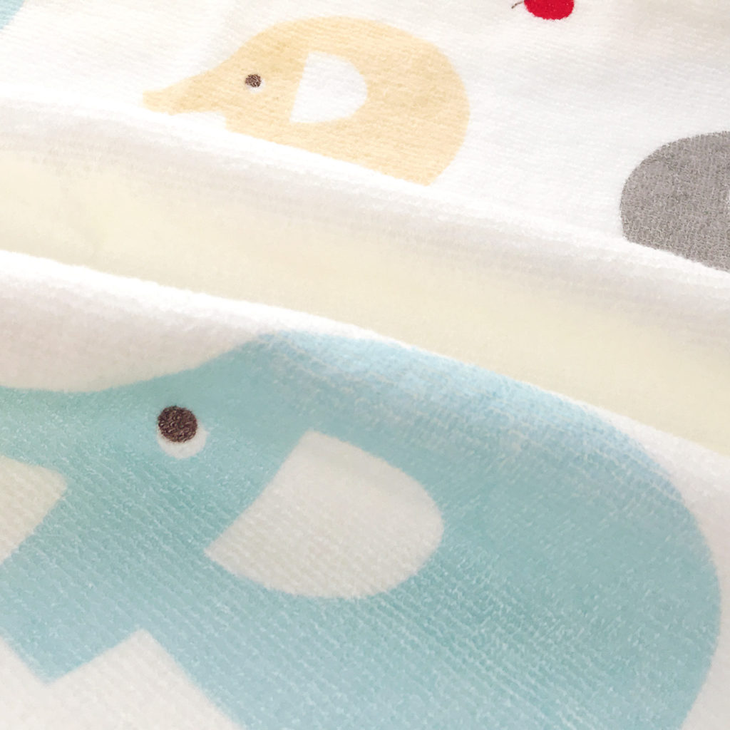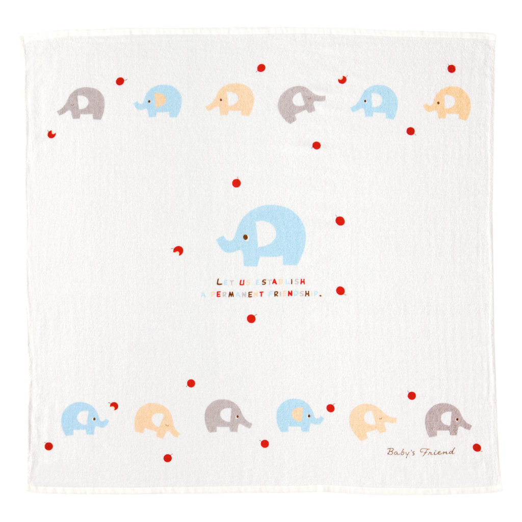 りんごが大好きなぞうさんたちがとっても可愛いプリントのバスタオル。泉州タオルの厳しい品質基準をクリアしていますので、デリケートな赤ちゃんの肌にも安心してお使いいただけます。