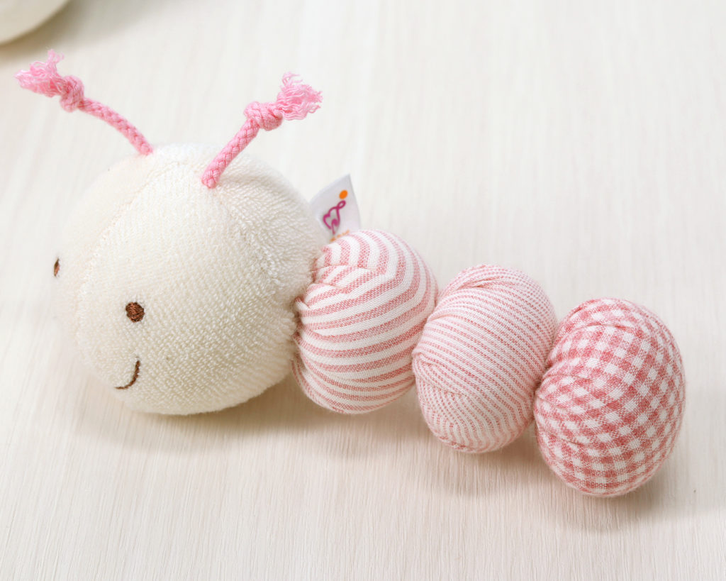 赤ちゃんの視覚、聴覚、触覚などの発達を助け、なめても安全な布製のおもちゃです。地球にも赤ちゃんのお肌にもやさしいオーガニックコットンを使用。日光や蛍光灯、汗により多少の色あせがあります。お洗濯は軽く手洗いをして、よく乾燥をさせてください。塩素系漂白剤、蛍光増白剤は使用しないでください。