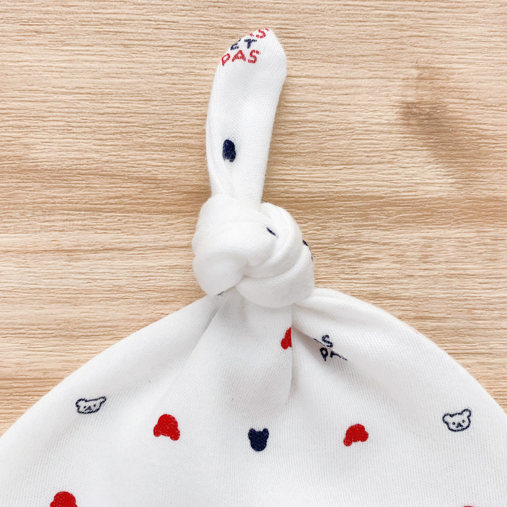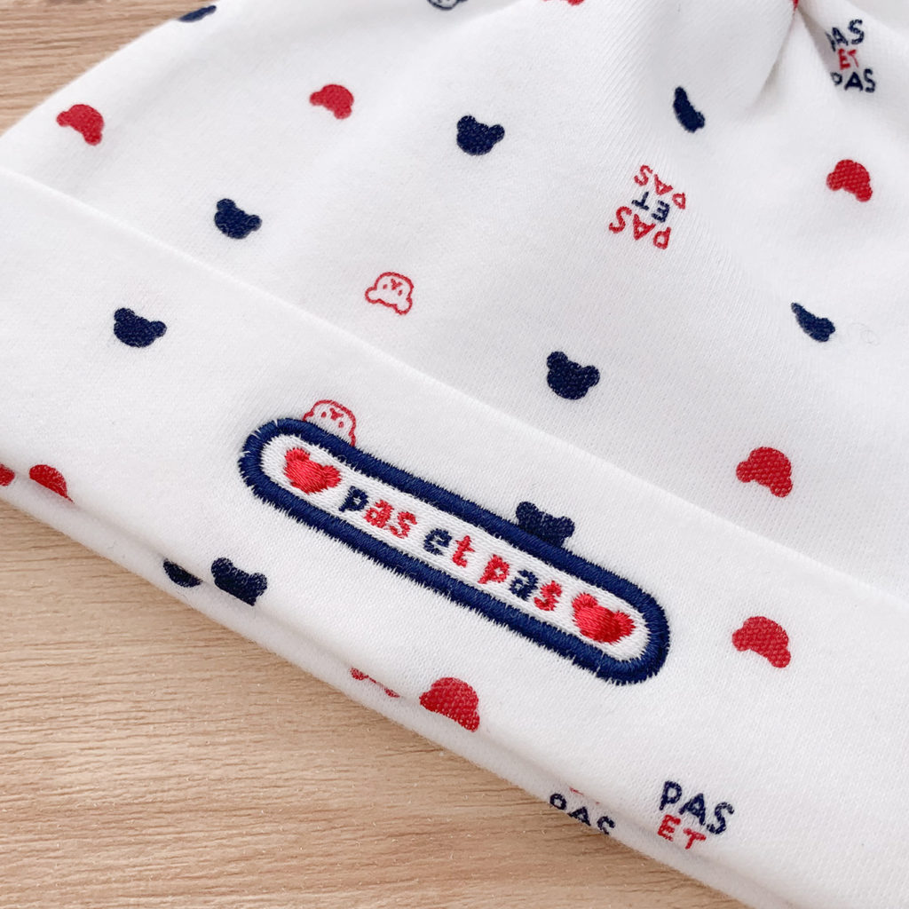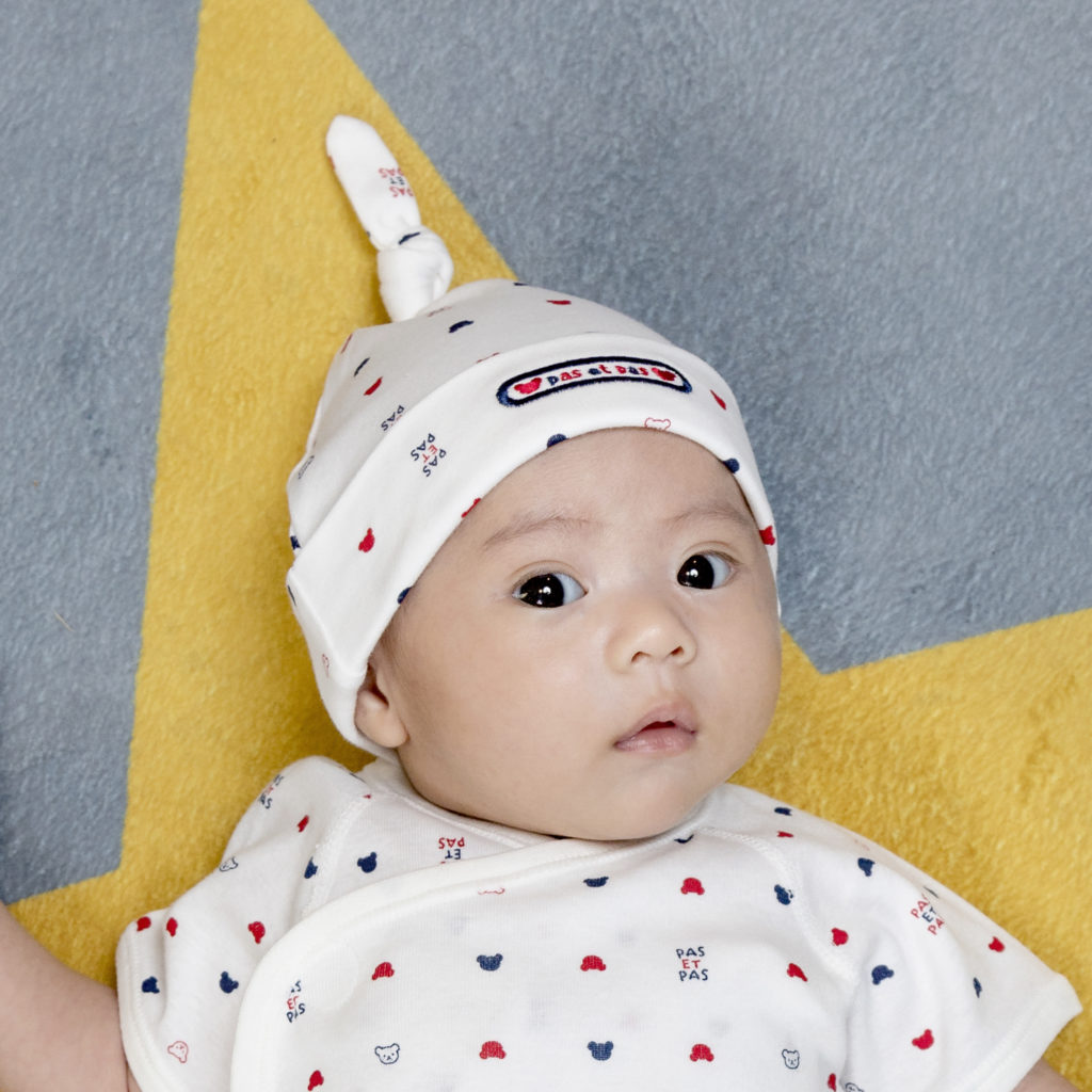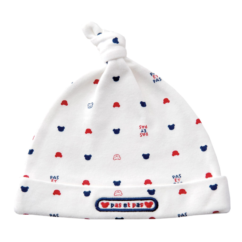 さわやかなトリコロールカラーのくまさん柄がかわいいフードです。男女問わずお使い頂けます。