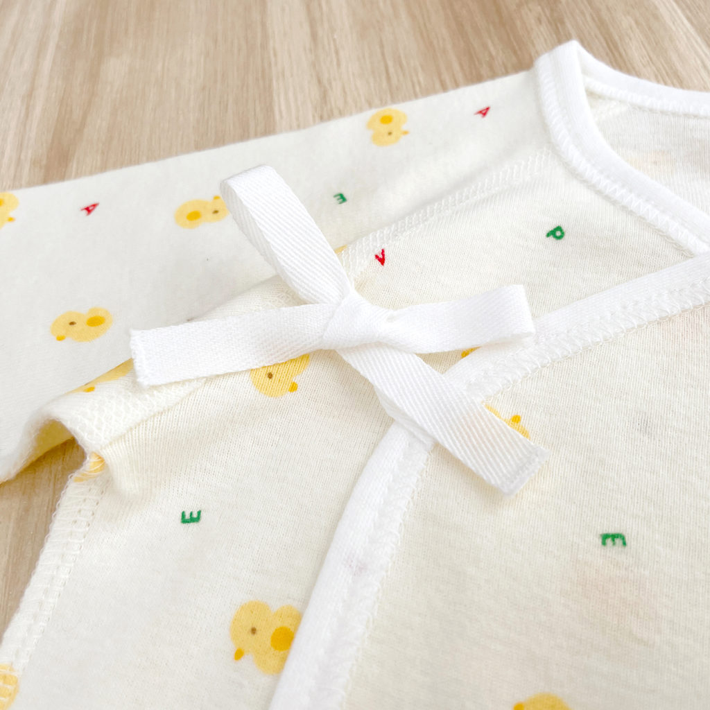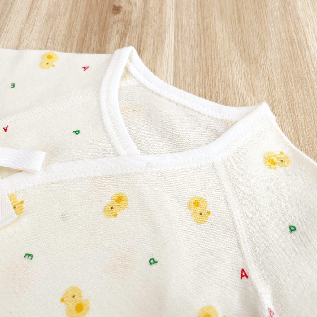 オールシーズンお使い頂けるフライス素材は、伸縮性に優れ肌にフィットして汗をしっかり吸収します。 デリケートな赤ちゃんの肌に刺激を与えないように縫い目は平面縫製を採用。 型くずれしにくい衿のパイピングやほつれないひも先など、ベビー用品専門メーカのこだわりが詰まった肌着です。
