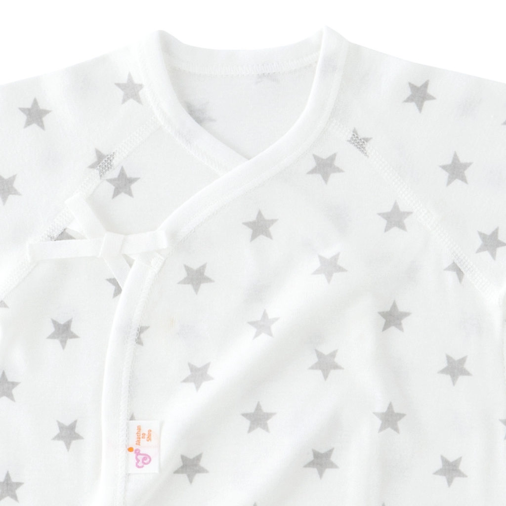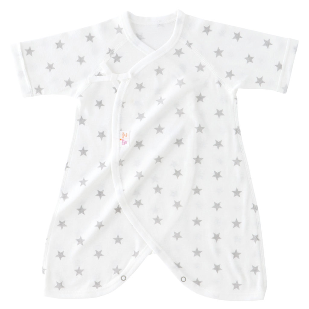 デリケートな赤ちゃんの肌に刺激を与えないように、縫い目は平面縫製を採用。 裾広がりのシルエットで赤ちゃんの脚の動きを妨げません。 裾めくれを防止するスナップ付きです。 オールシーズンお使い頂けるフライス素材は、伸縮性があり、肌にフィットして汗をよく吸収してくれます。出産準備の基本アイテムです。